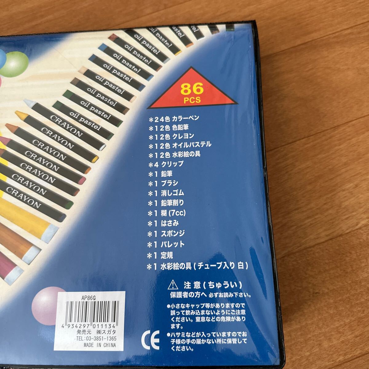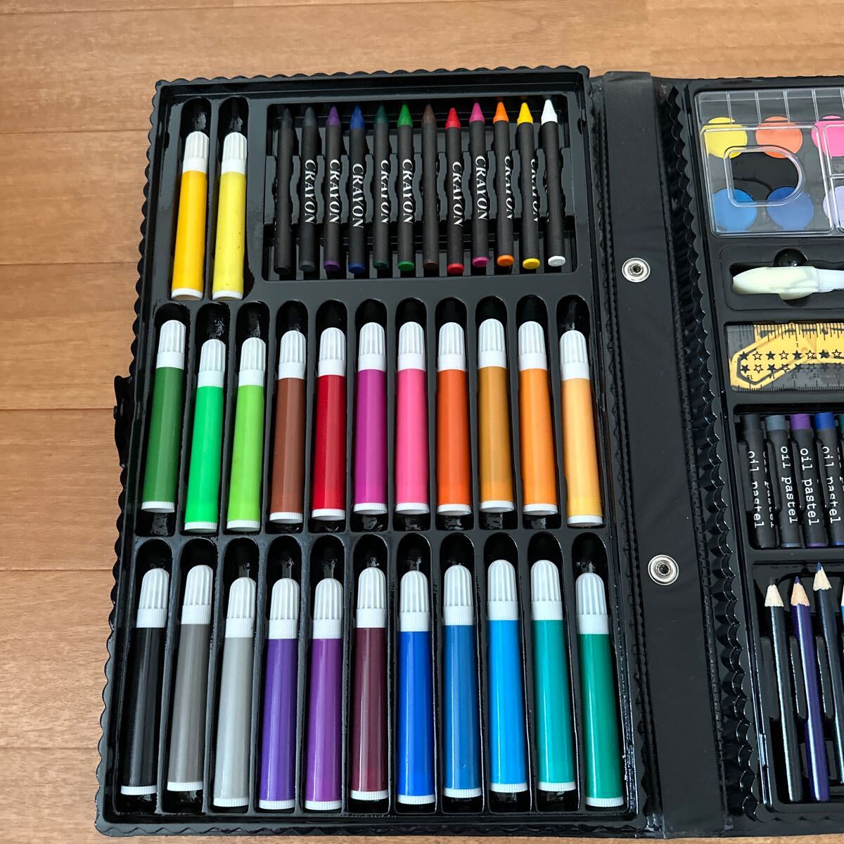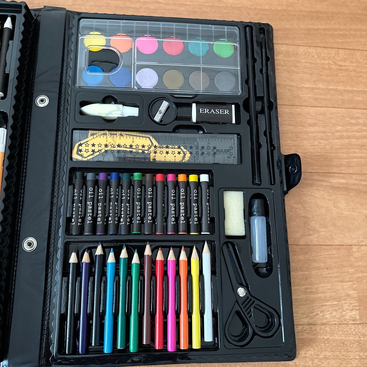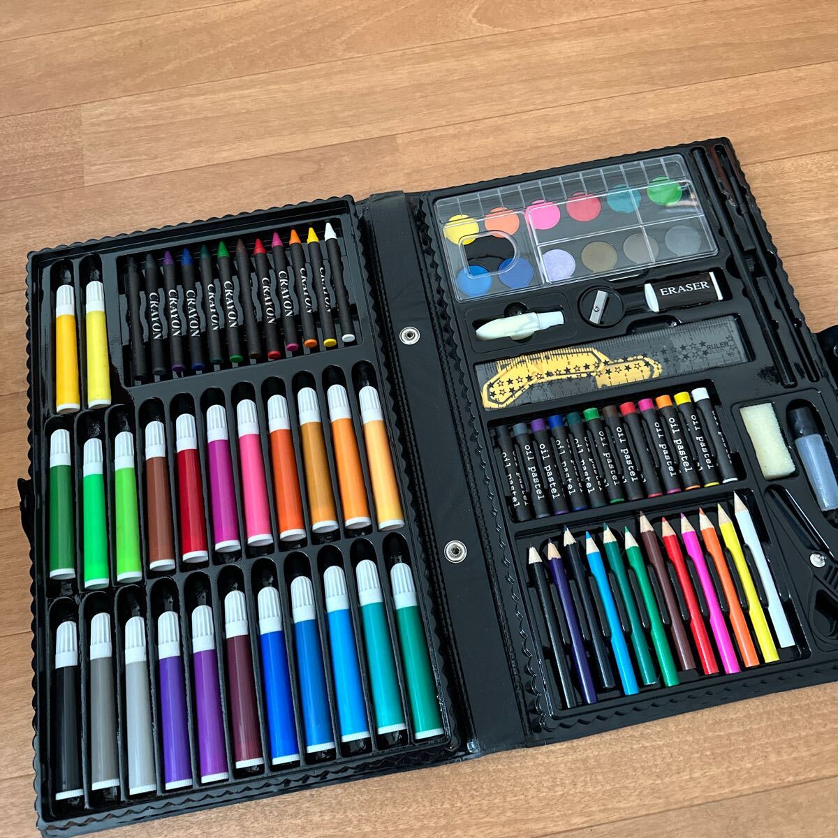 カラーペン、色鉛筆、クレヨン、水彩絵の具等がセットになっています。