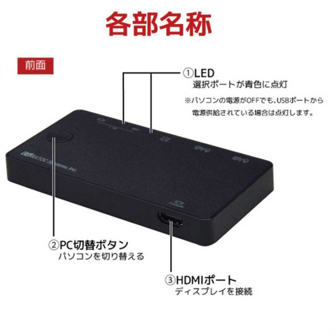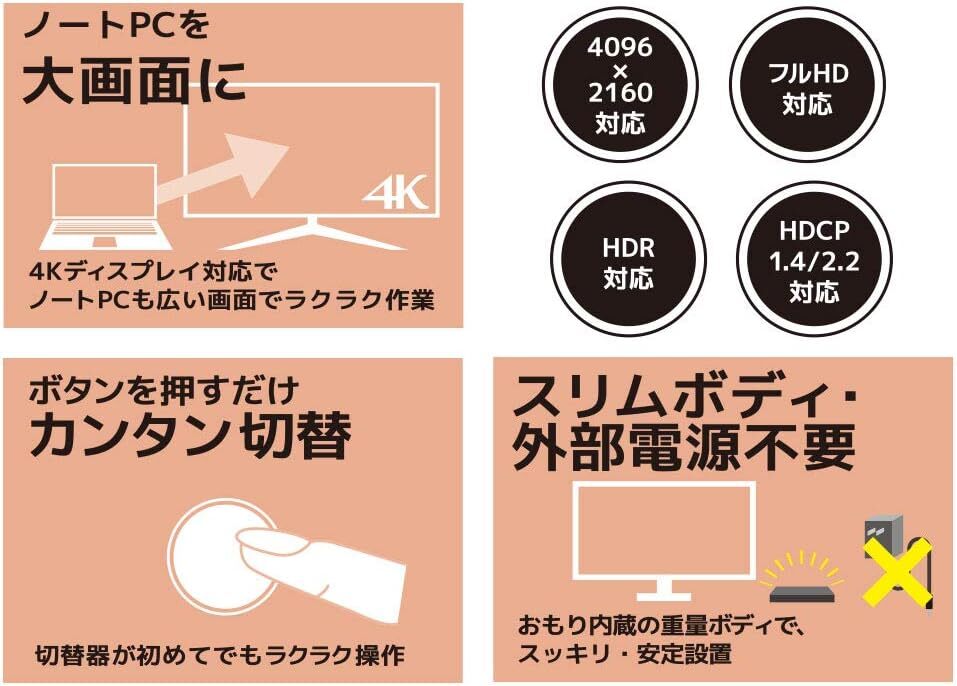 4K HDMI ディスプレイ/USBキーボード・マウス パソコン切替器(USB-C/Aパソコン対応)