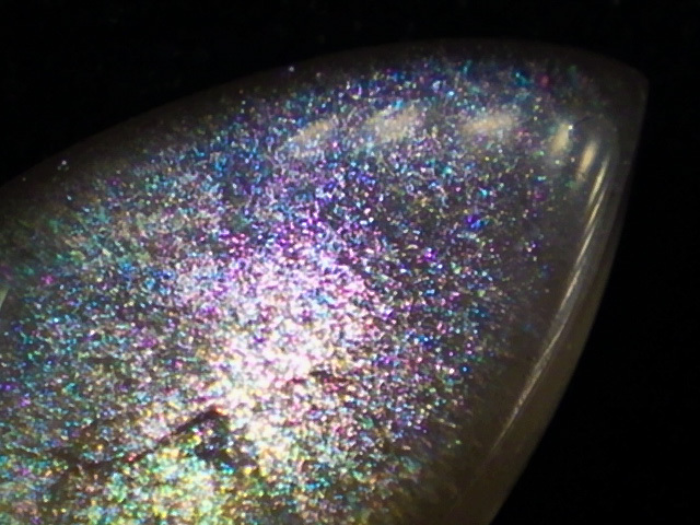 結晶構造による三日月型のクラック(画像9参照)がありますが、表面に凹凸は無く内部にあり、この中は虹のグラデーションになっています。