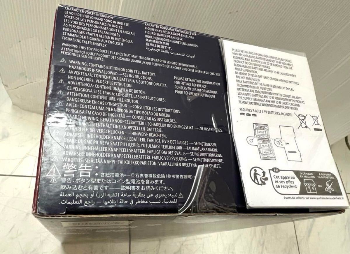 *胸のボタンを押すと作動するリアルなキャラクターサウンド(セリフは数種類の英語)やライトアップエフェクトを搭載。