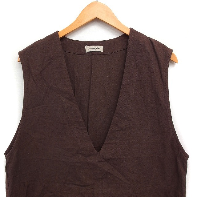 サマンサモスモス SM2 ベスト Vネック 無地 綿麻 F ブラウン 茶 /FT39 レディース