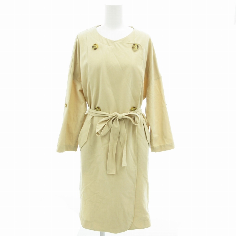 アーバンリサーチ URBAN RESEARCH ノーカラーダブルコート ロング ベルトリボン F ベージュ /GV レディース