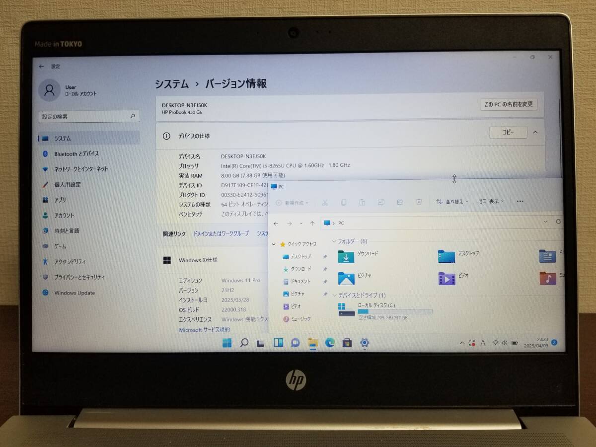 L63 美品 動作品 HP ProBook 430 G6 Core i5 第8世代 (8265U)◆8GB◆NVMe M.2 SSD256GB ◆13.3インチ HD Win11 PC laptopノートパソコン