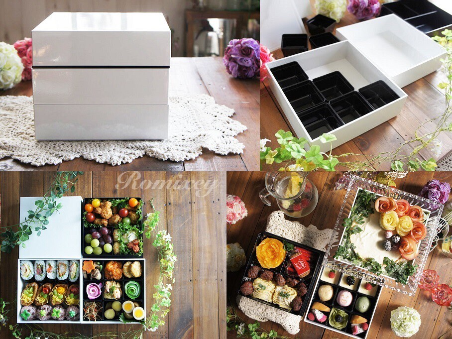 清潔感のある白。シンプルでオシャレで便利なホワイト3段重箱です。
