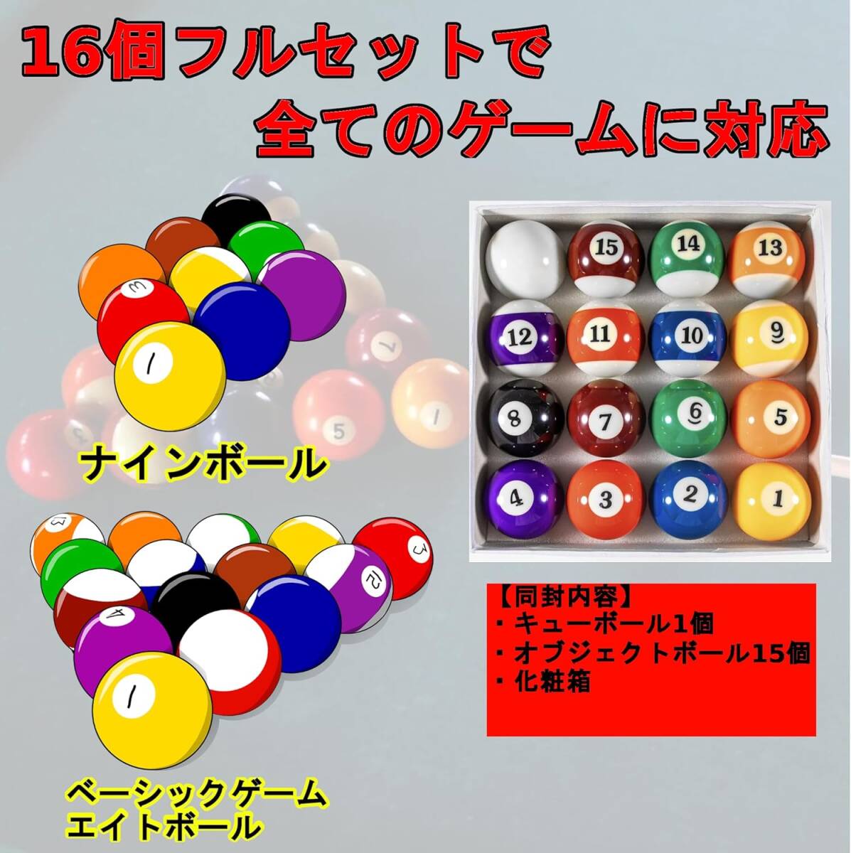 ビリヤード ボール 16個 セット 57.2mm 玉 球 硬質プラスチック 樹脂 (16個フルセット) ナイン エイト ビリヤード キュー