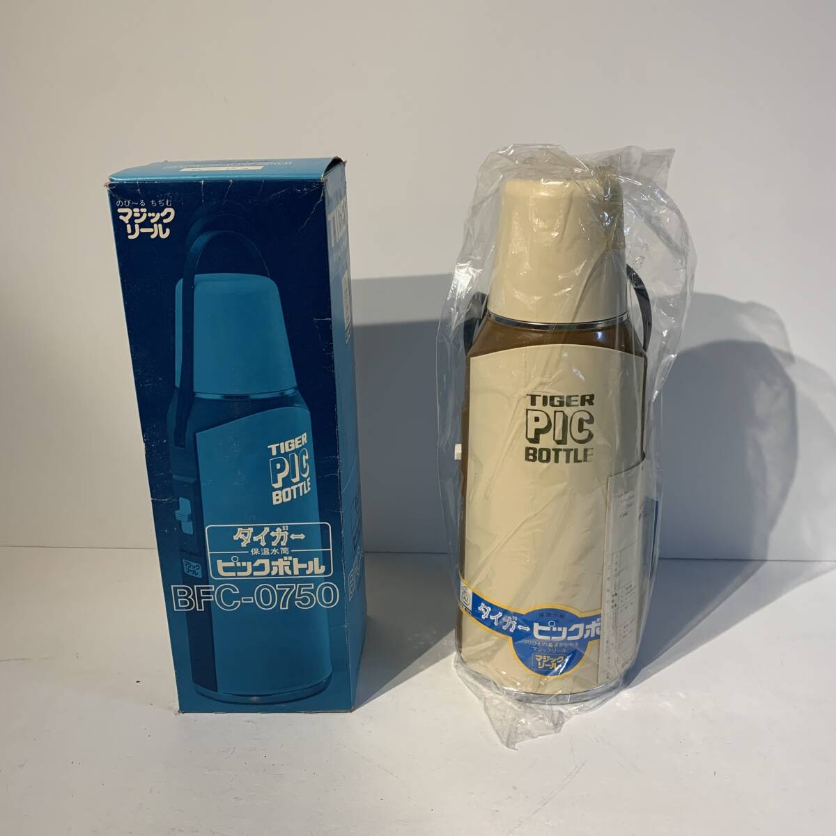未使用 昭和レトロ タイガー TIGER ピックボトル 保温水筒 ベージュ ブラウン BFC-0750 マジックリール デッドストック 魔法瓶