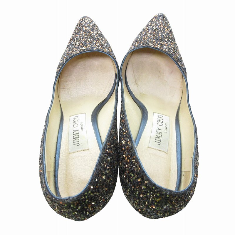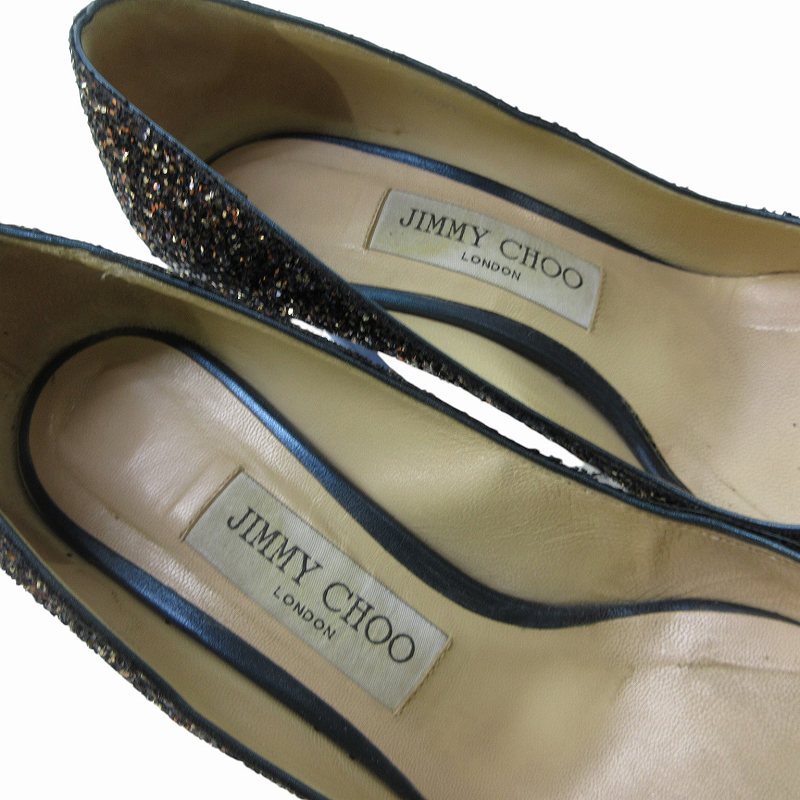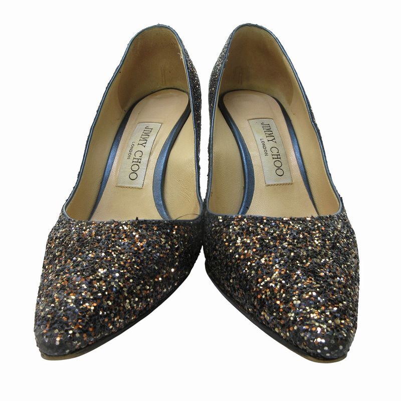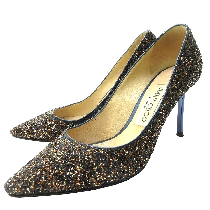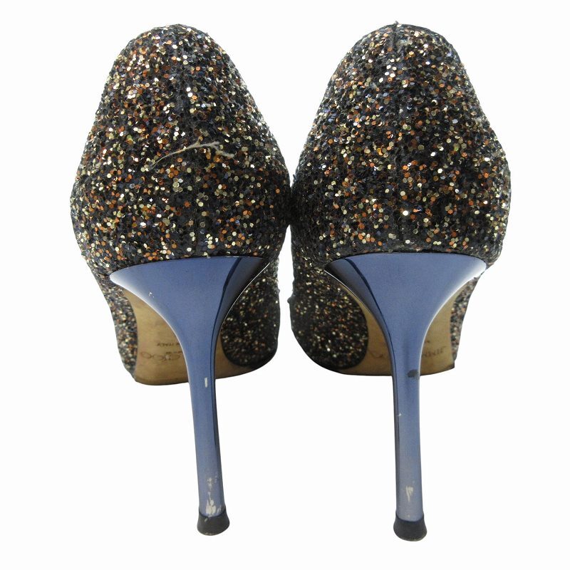 ジミーチュウ JIMMY CHOO グリッター ラメ パンプス シューズ ハイヒール 紺 ネイビー 36 約23cm IBO67