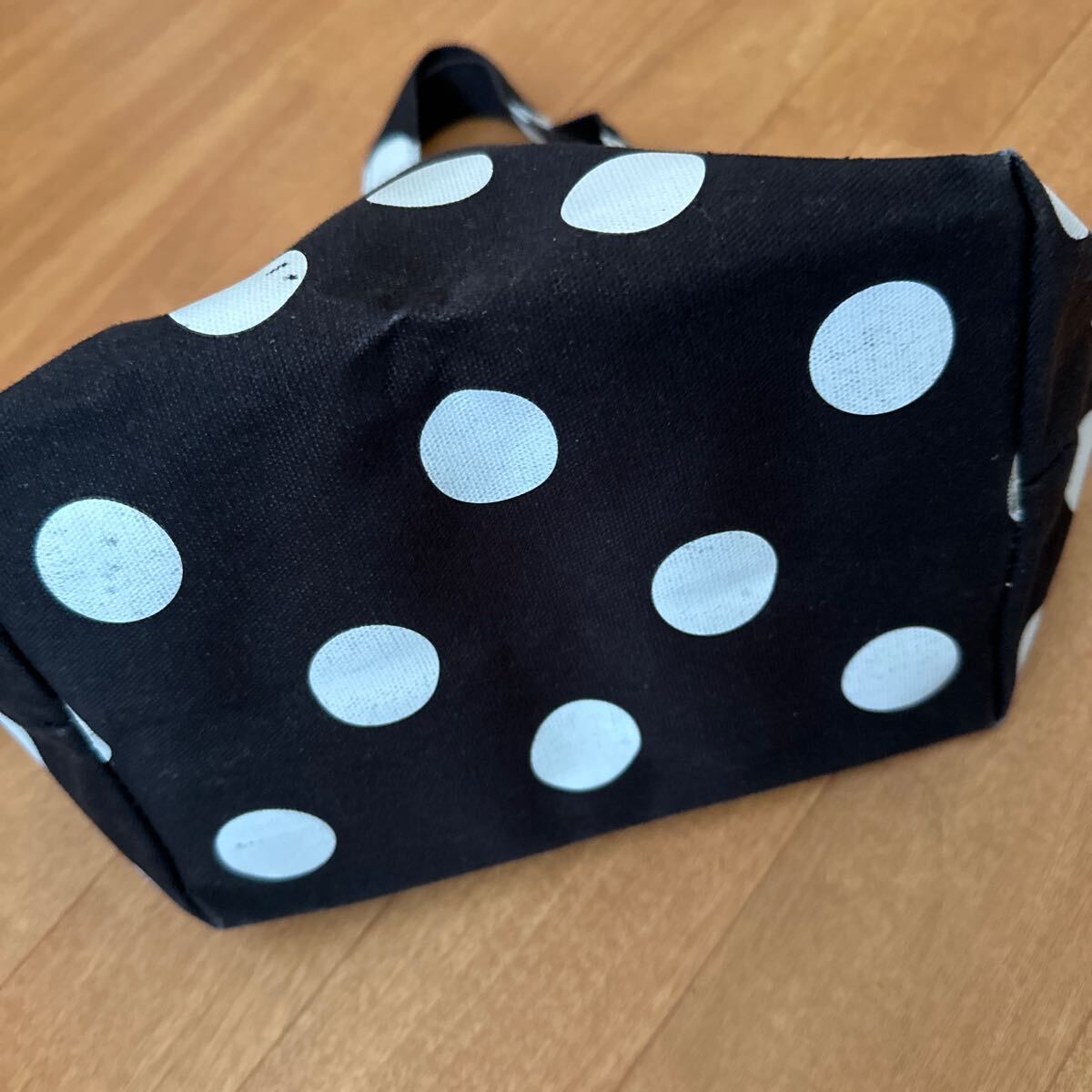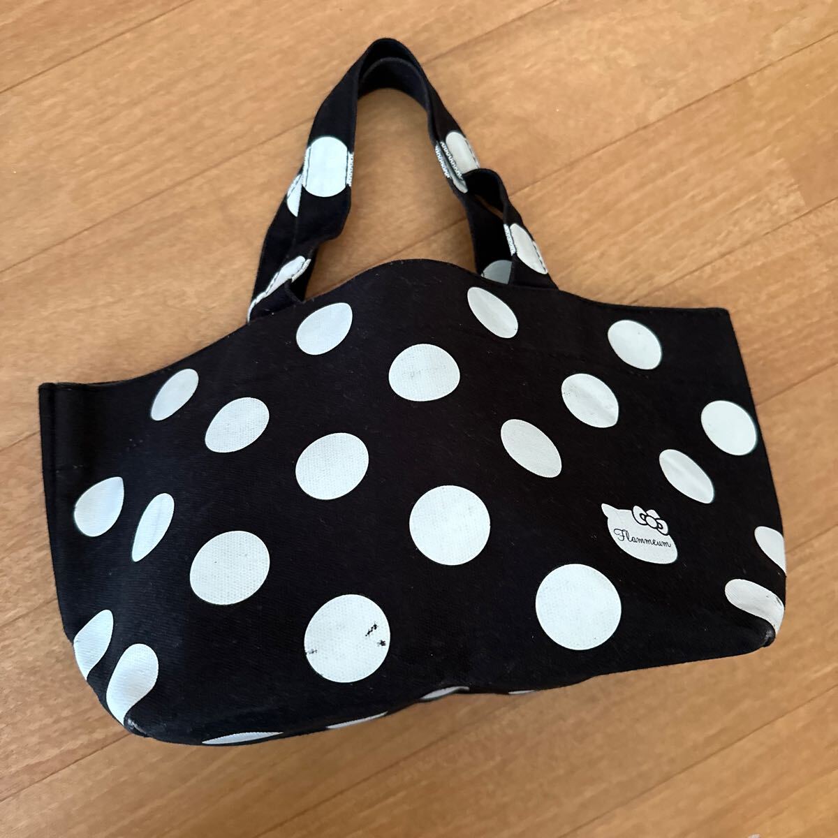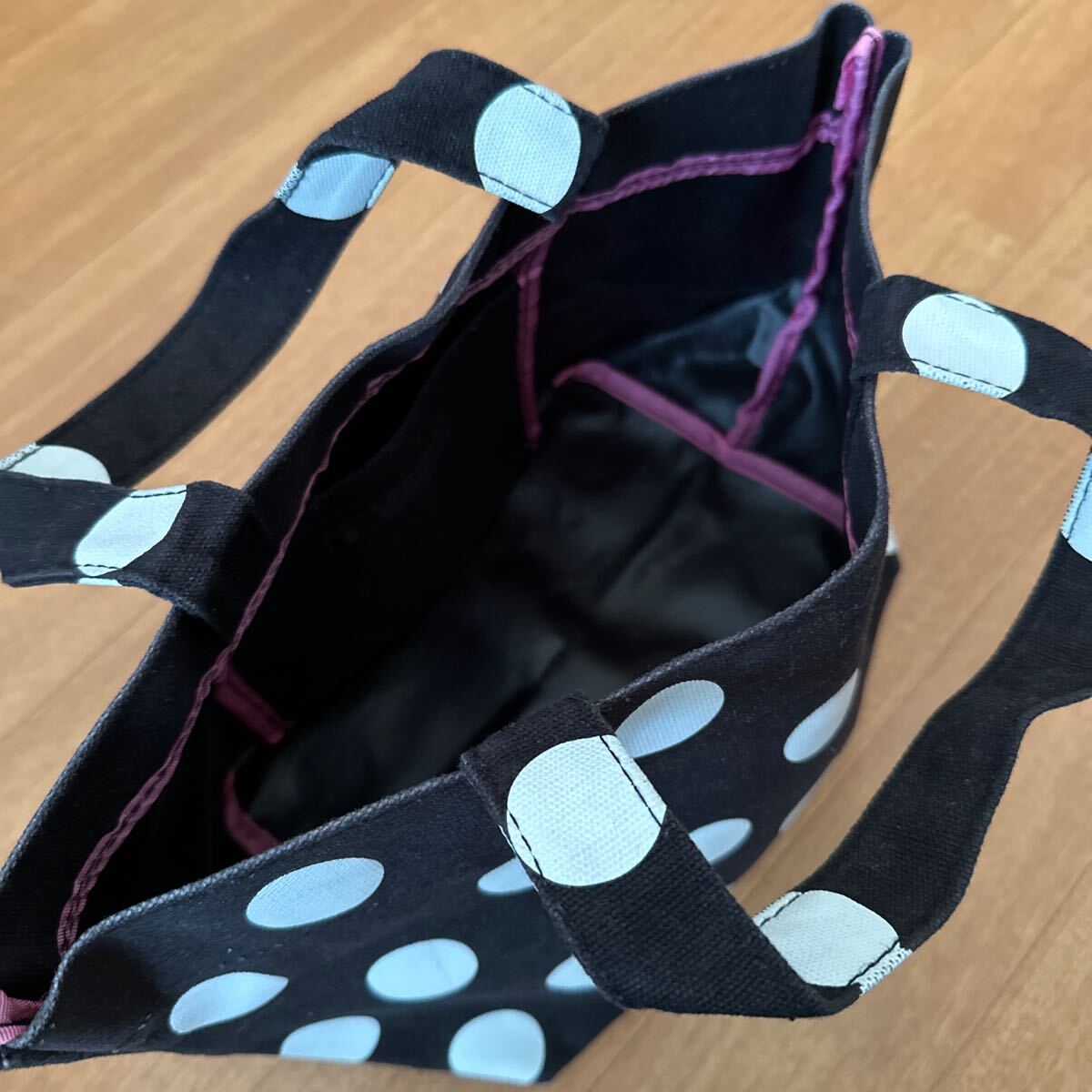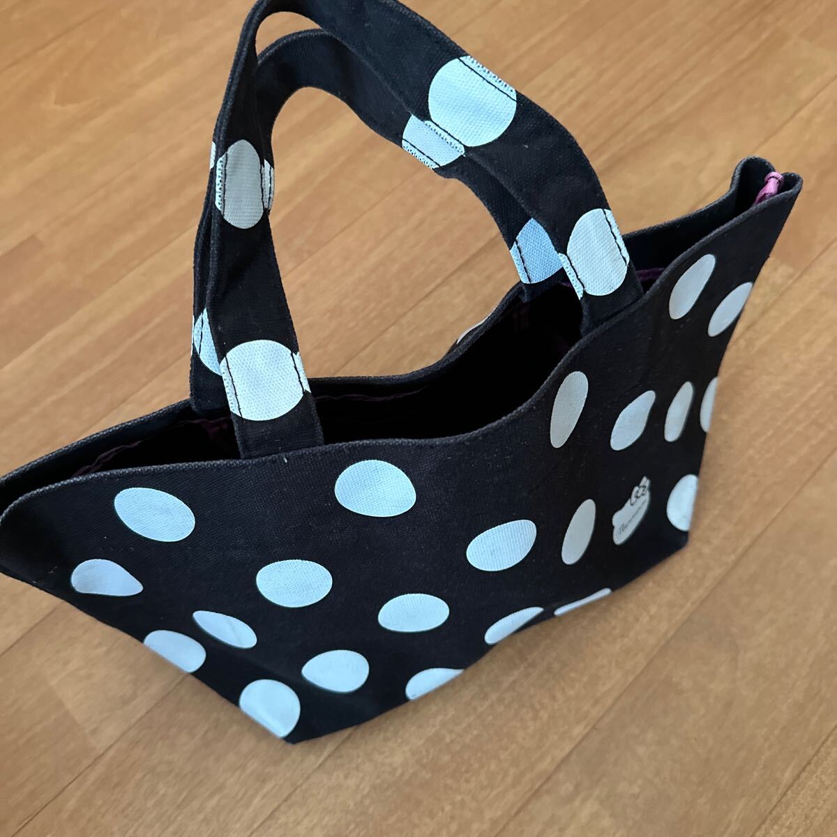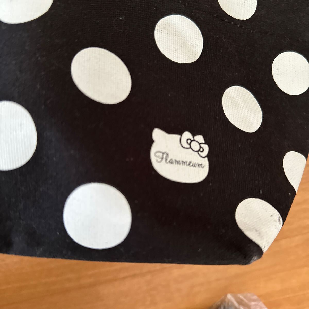 ★黒地に白の水玉模様のトートバッグ、Flammeumブランド。