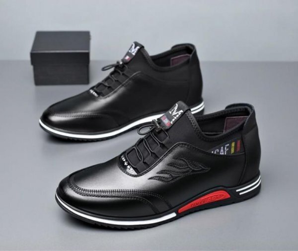 新品★未使用 スリッポン スニーカー シークレットシューズ 身長アップ メンズ カジュアル ドライビングシューズ【8912】黒 25.5cm