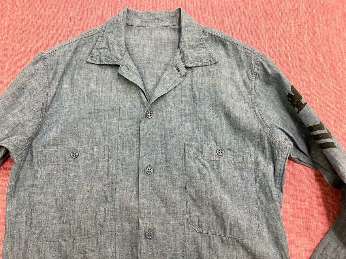 VINTAGE ヴィンテージ 60s U.S. NAVY USN ステンシル セルビッチ 耳付き コットン シャンブレー シャツ 14 1/2 ミントコンディション
