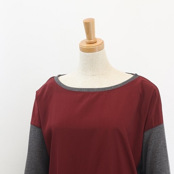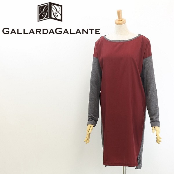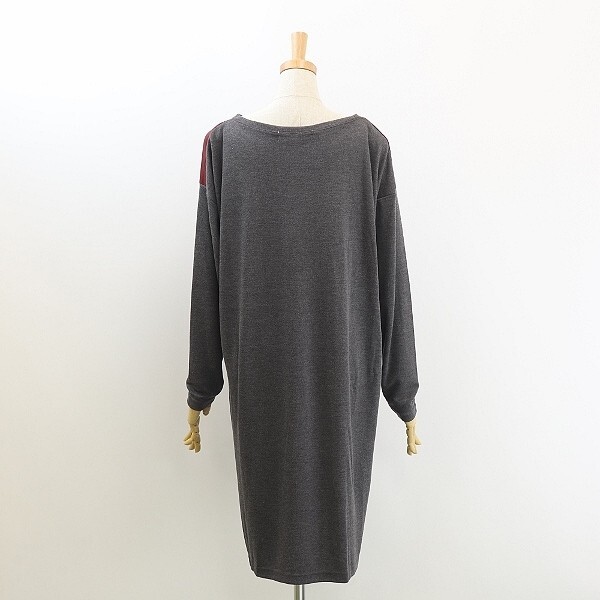 | ◆GALLARDAGALANTE ガリャルダガランテ 異素材 切替 ドロップショルダー ワンピース バーガンディー×グレー F | |