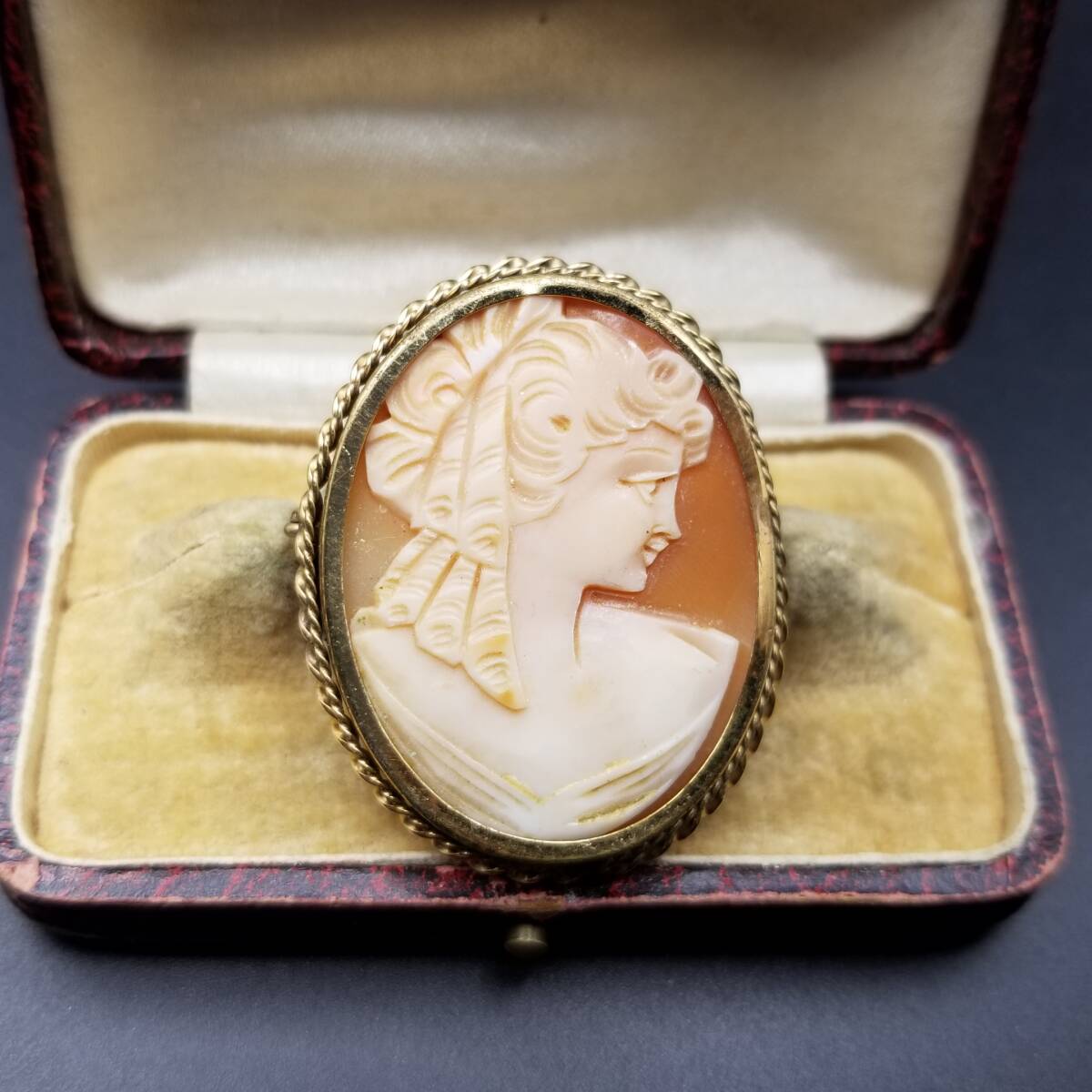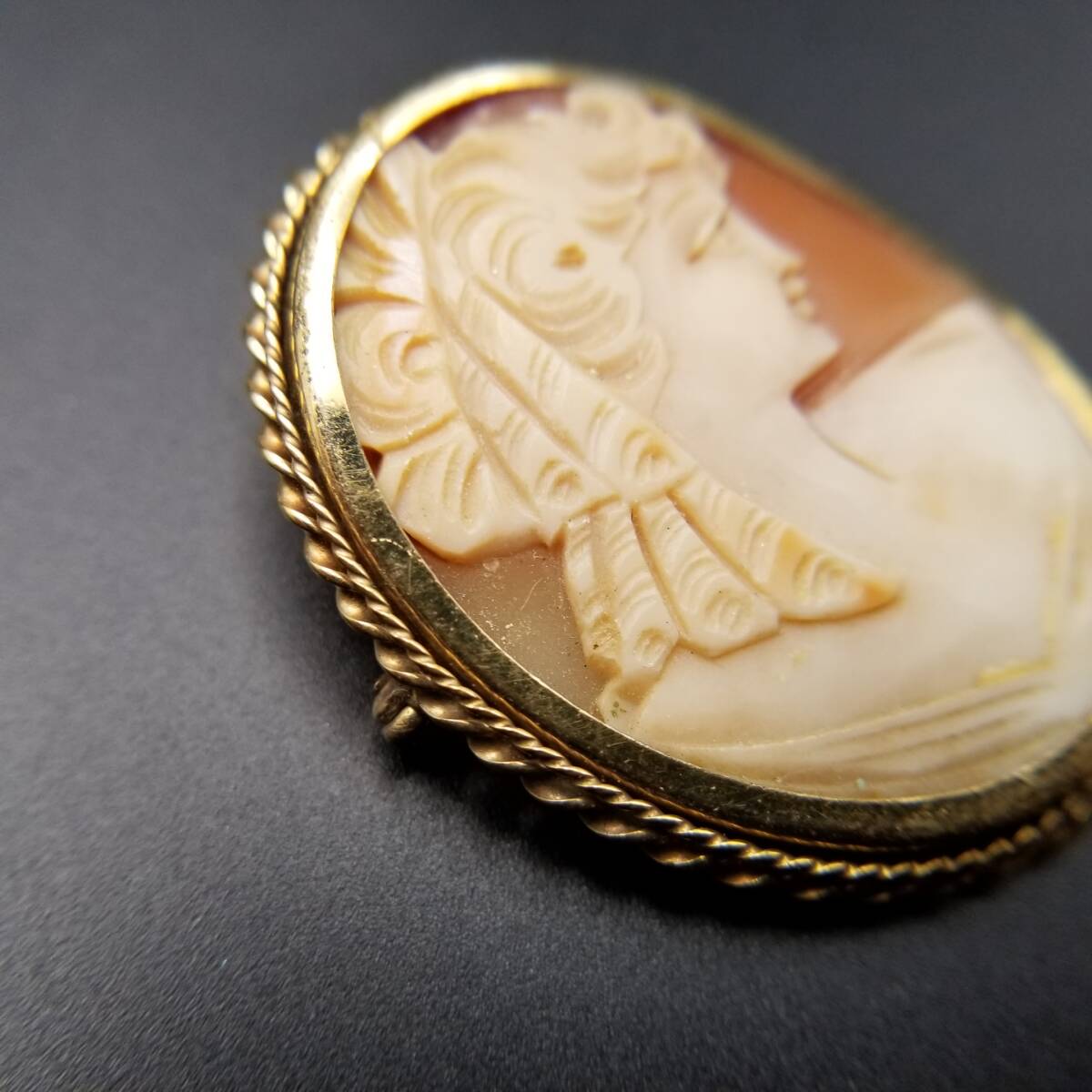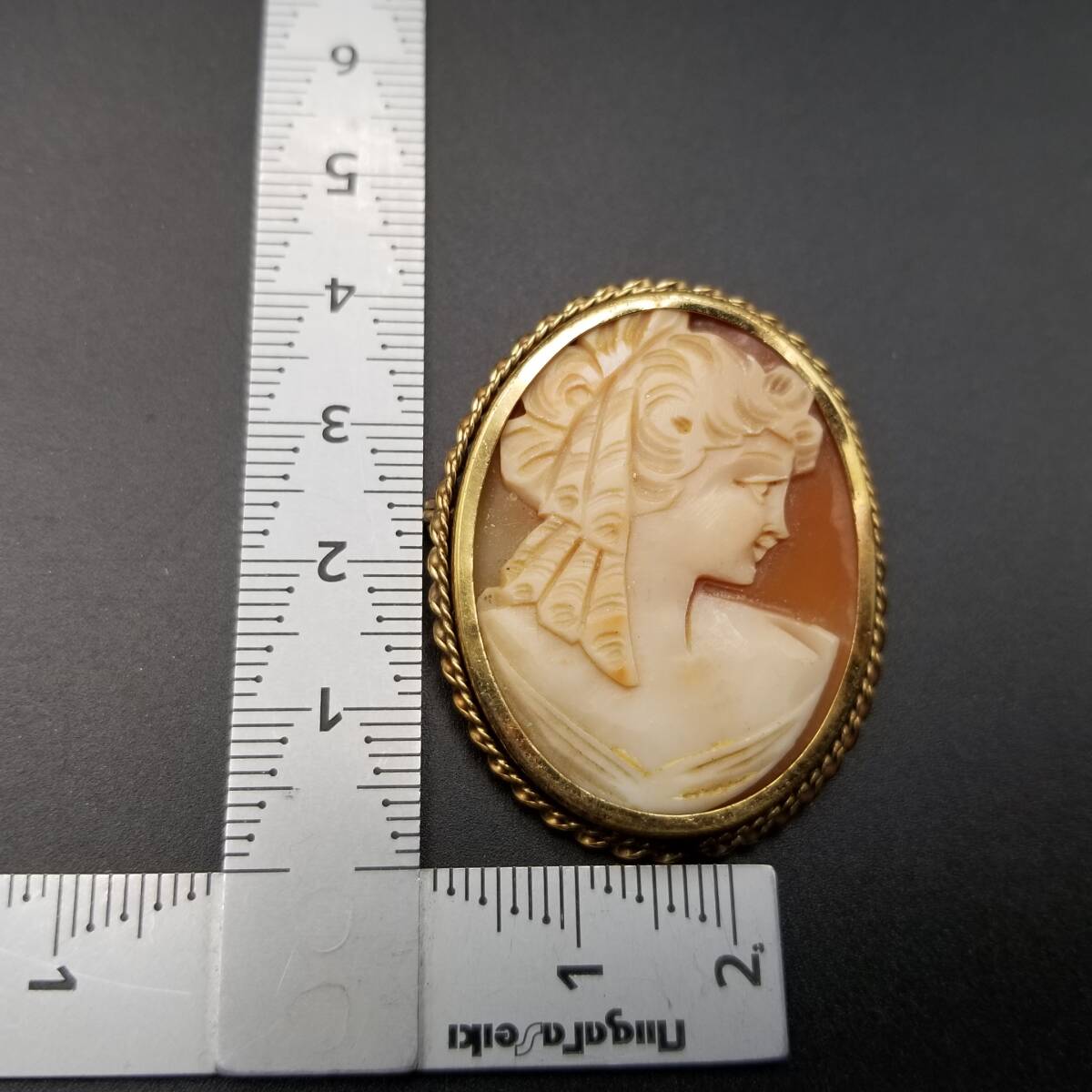 貴婦人の横顔 シェルカメオ ヴィンテージ ブローチ ゴールド金張り オーバルフレーム レトロ 上品 エレガント Y22-G