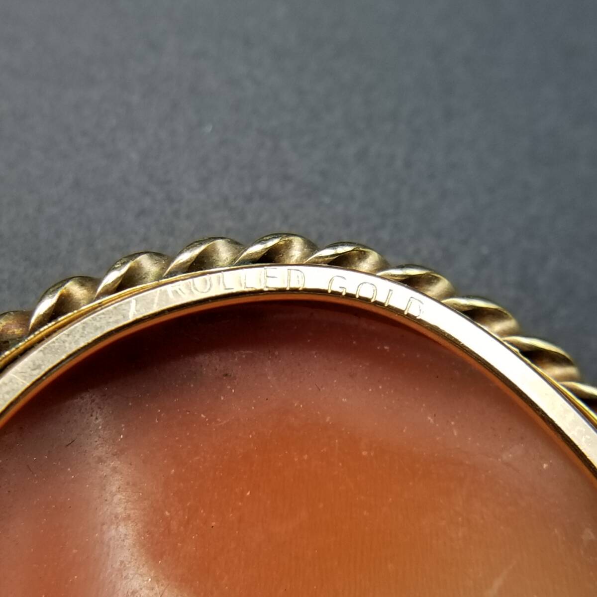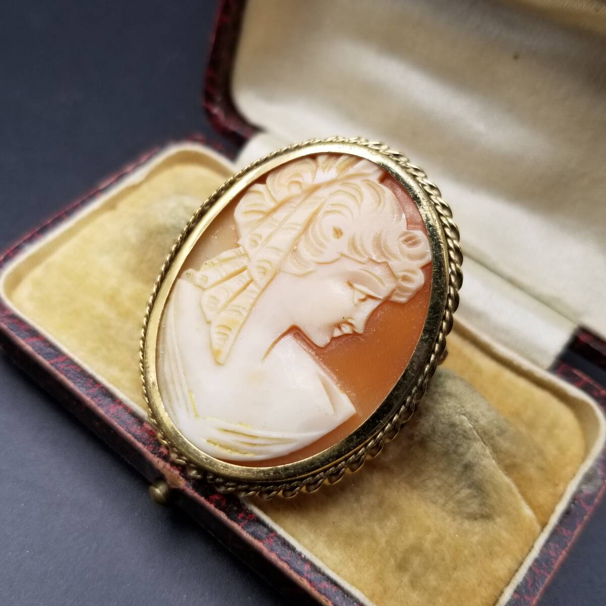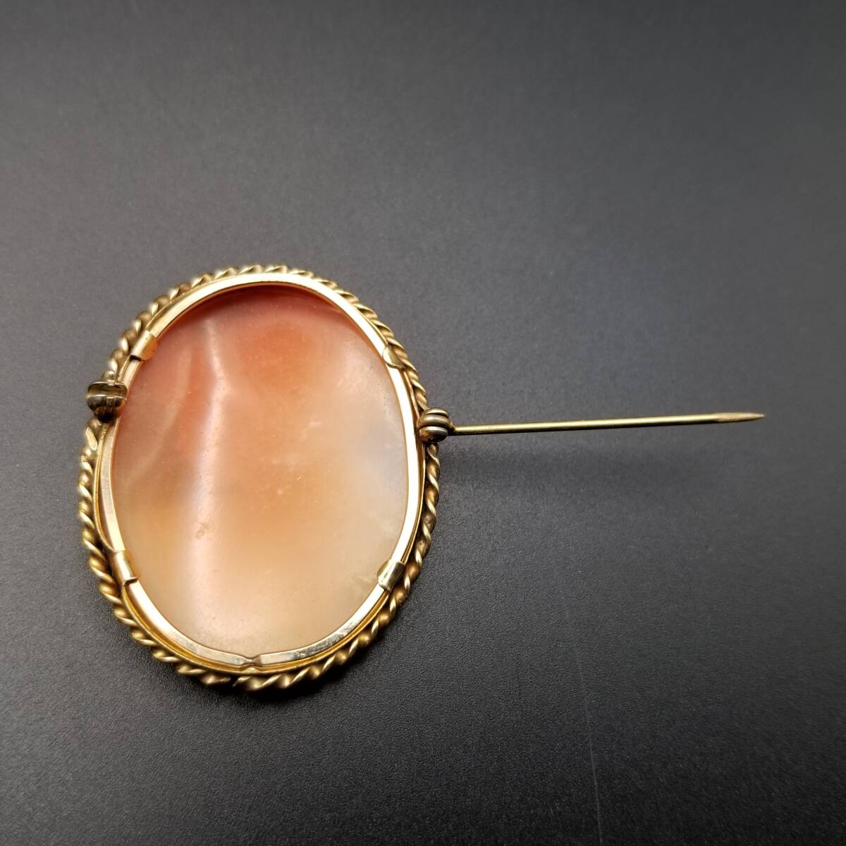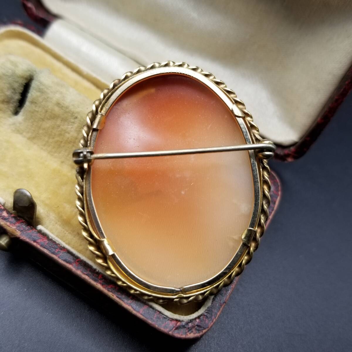 貴婦人の横顔 シェルカメオ ヴィンテージ ブローチ ゴールド金張り オーバルフレーム レトロ 上品 エレガント Y22-G