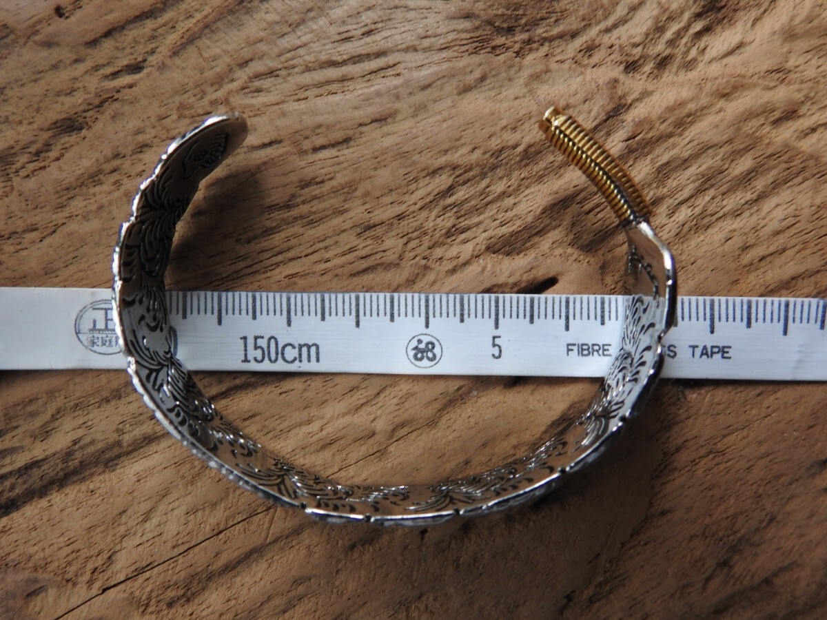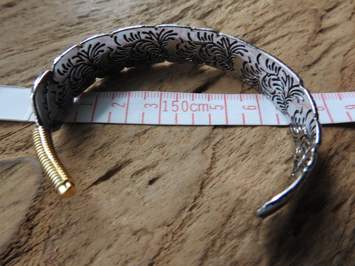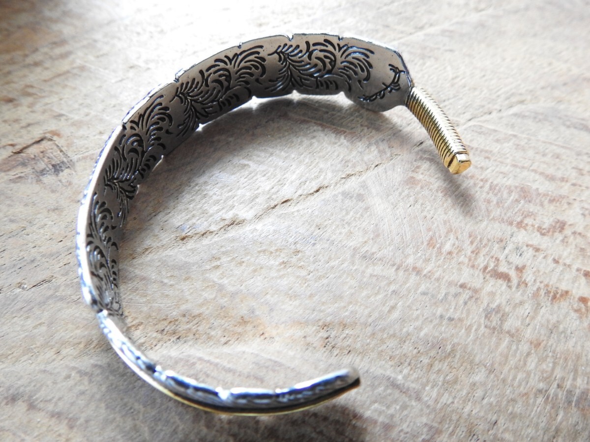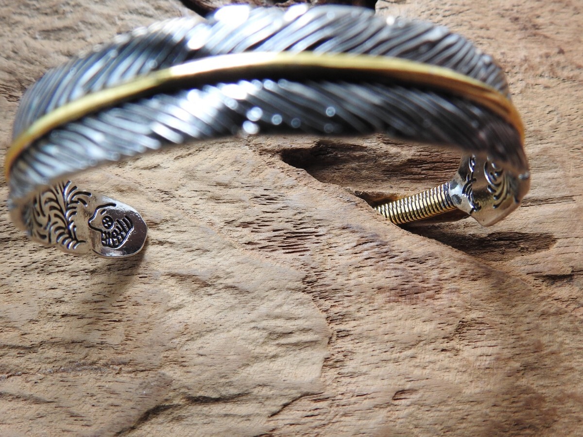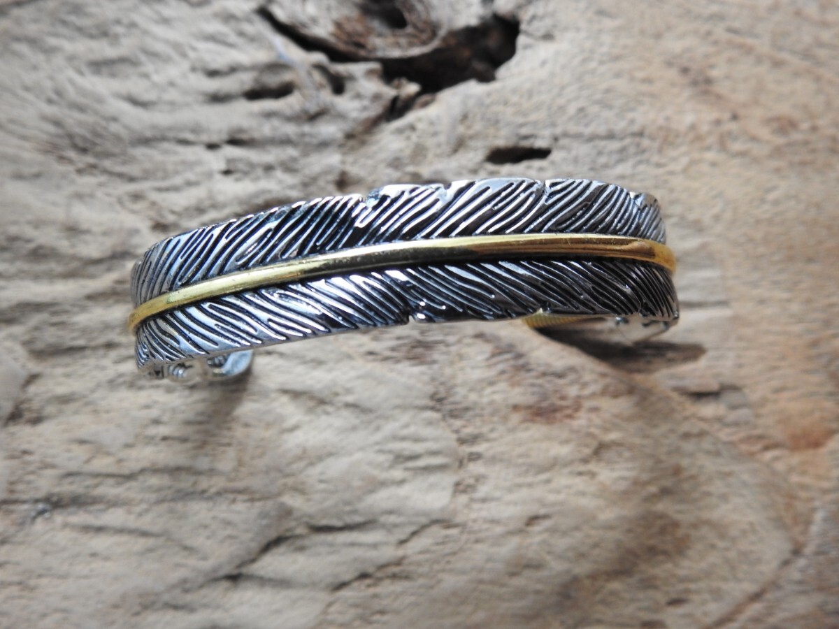 羽根モチーフのシルバーとゴールドのオープンバングル。