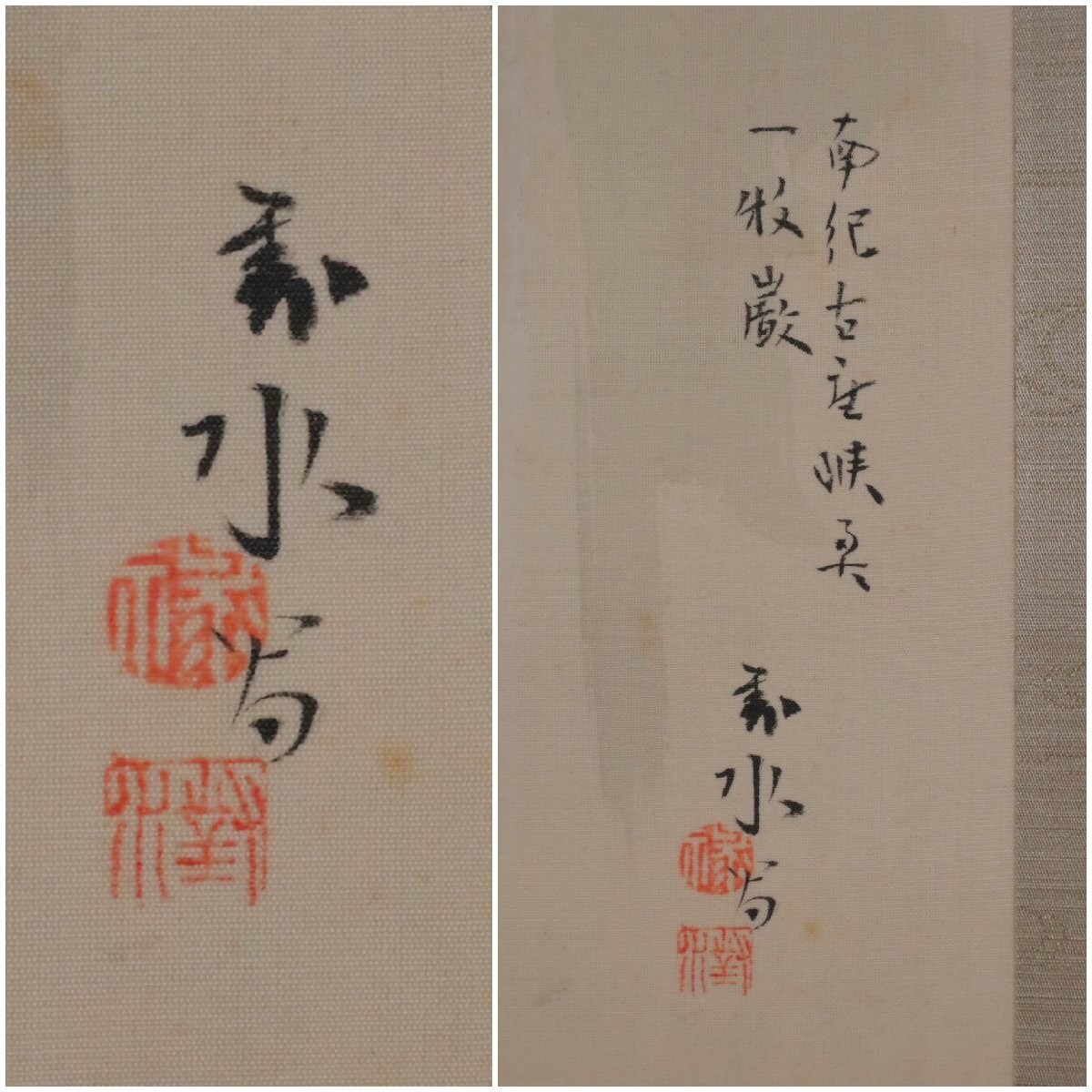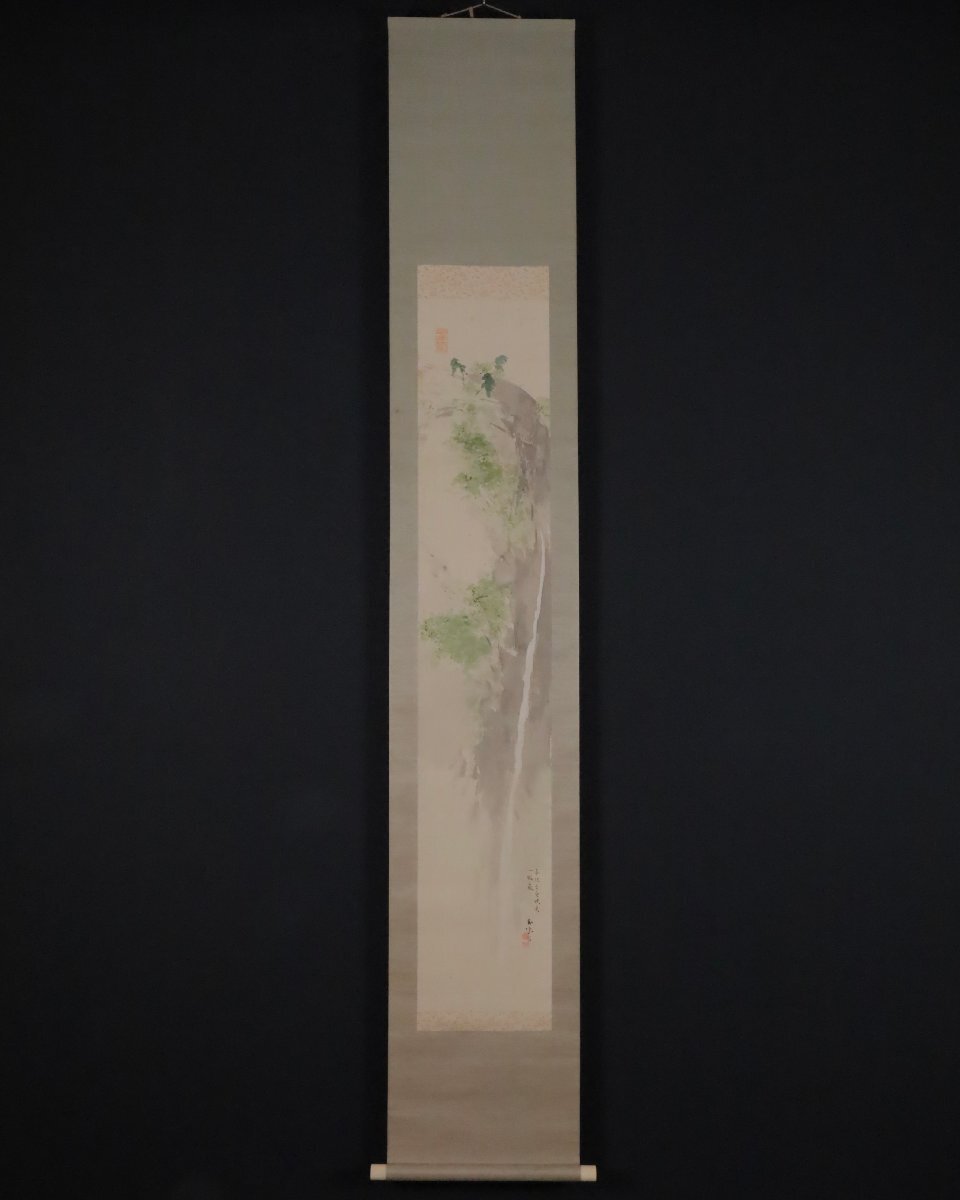 【模写】吉】12217 須磨対水 瀑布図 南紀 古座峡 和歌山県 大阪の人 久保田桃水師事 茶掛け 茶道具 掛軸 掛け軸 骨董品