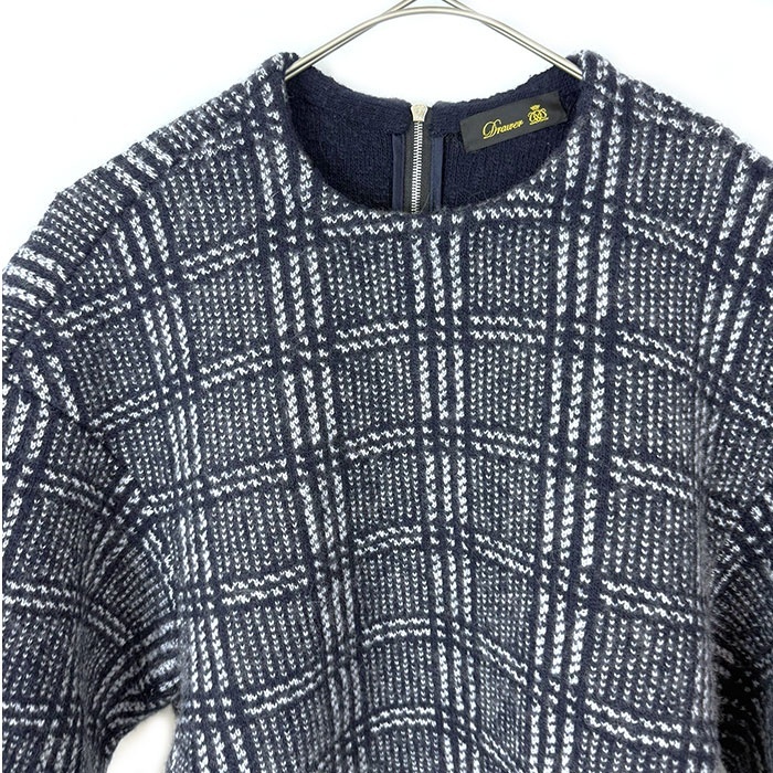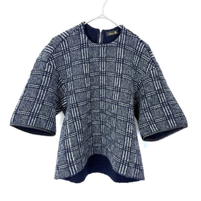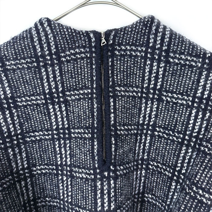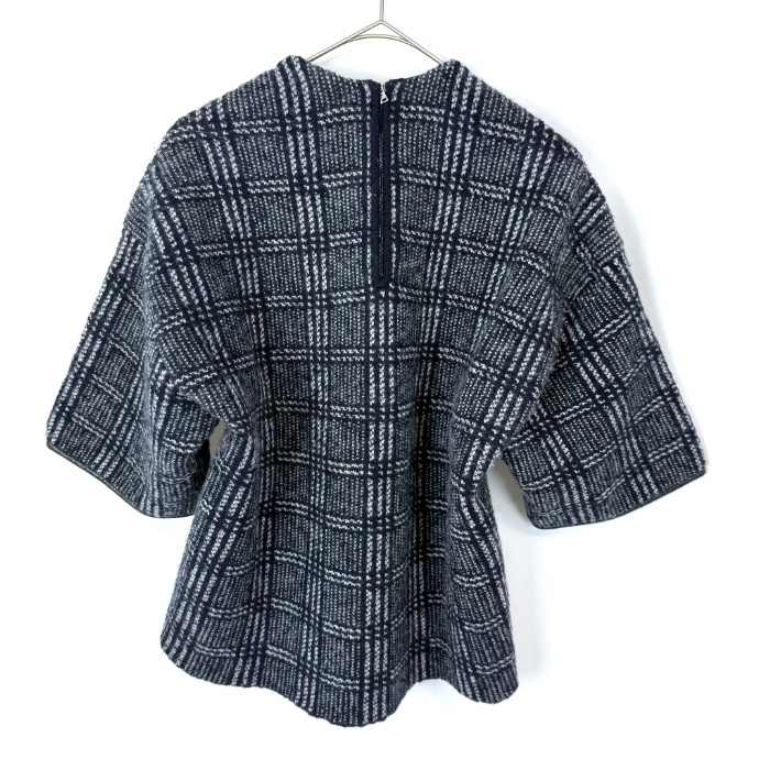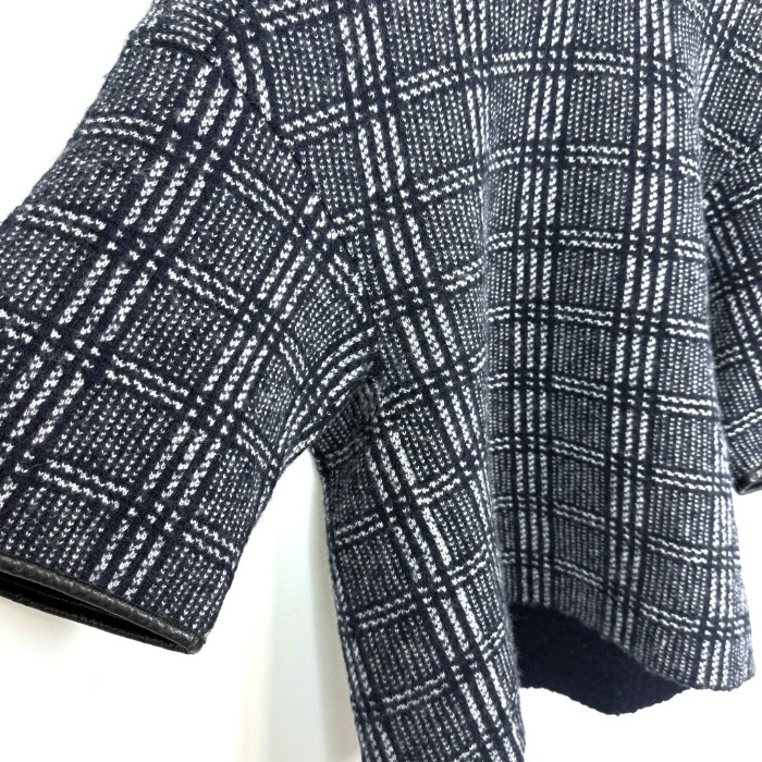 【コメント】 可愛いシルエットのチェック柄半袖ニットです。袖口はレザーでこだわりのデザイン。毛羽立ち、若干の毛玉がありますが、気になる汚れはなく全体的に状態の良い綺麗なお品物です。 |
