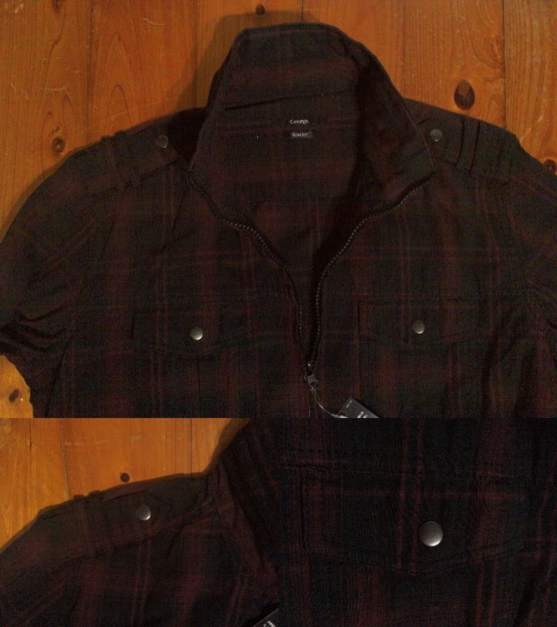 | ☆未使用☆ジョージ【George】フラップポケット エポレット ジップアップ ジャケット 長袖シャツ M 赤黒 | |