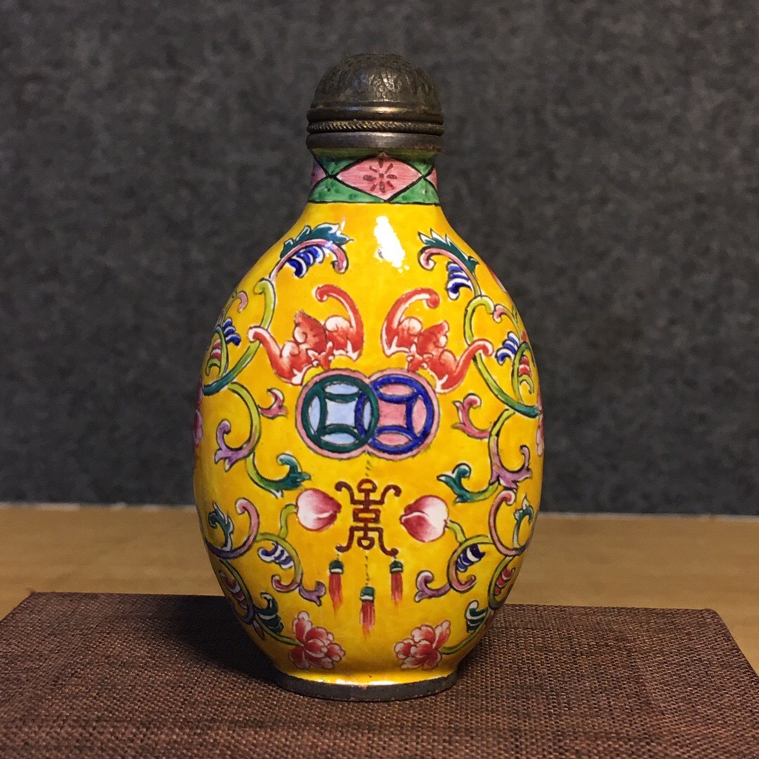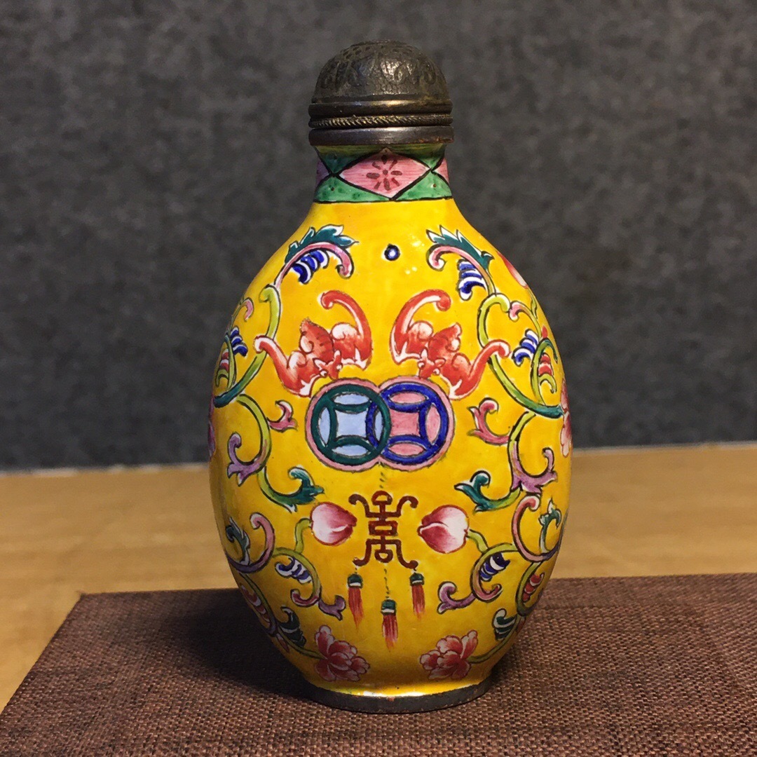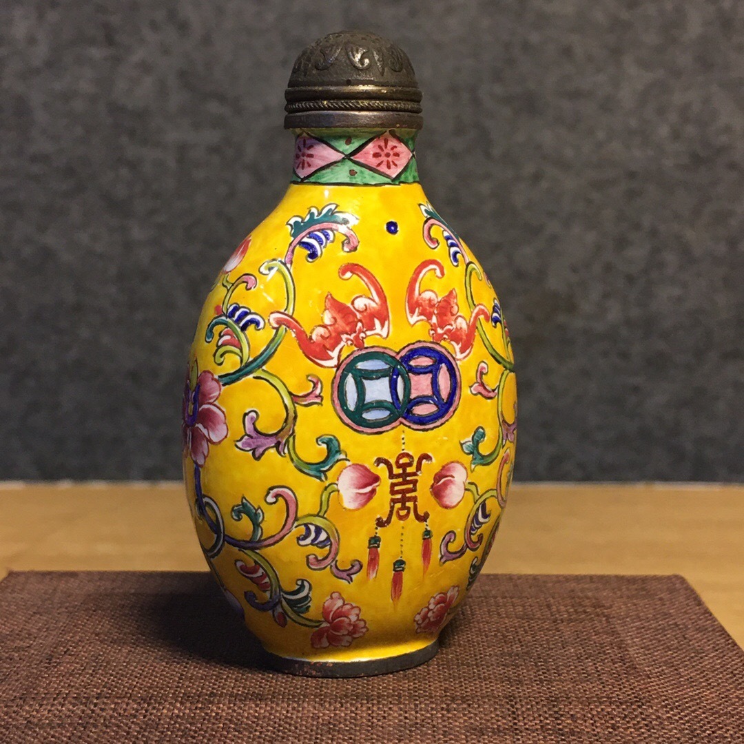 【仁】『銅製・景泰藍・琺瑯彩・福在眼前紋・鼻煙壺・根付・裝身具』極細工 古賞物 中国古玩 古美術 古美味