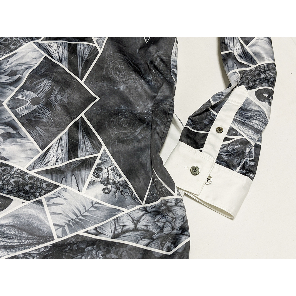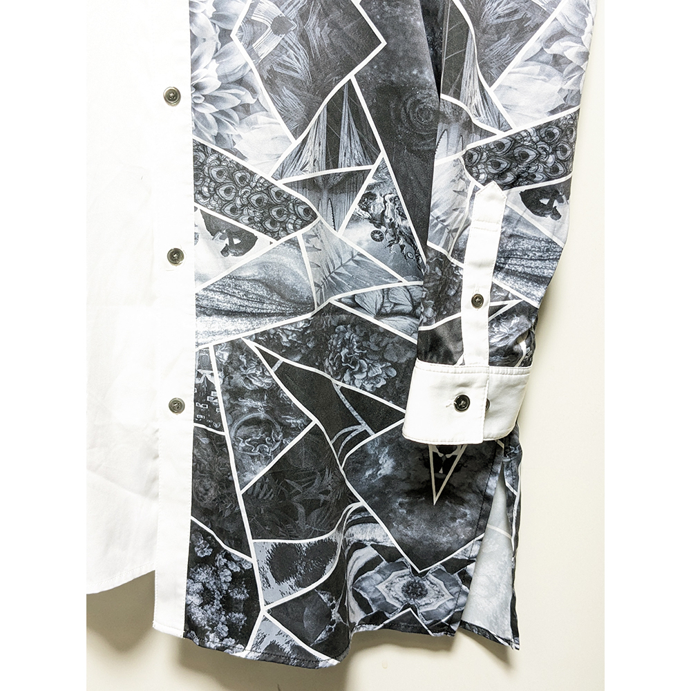 アシンメトリーで片側が総柄のシャツ