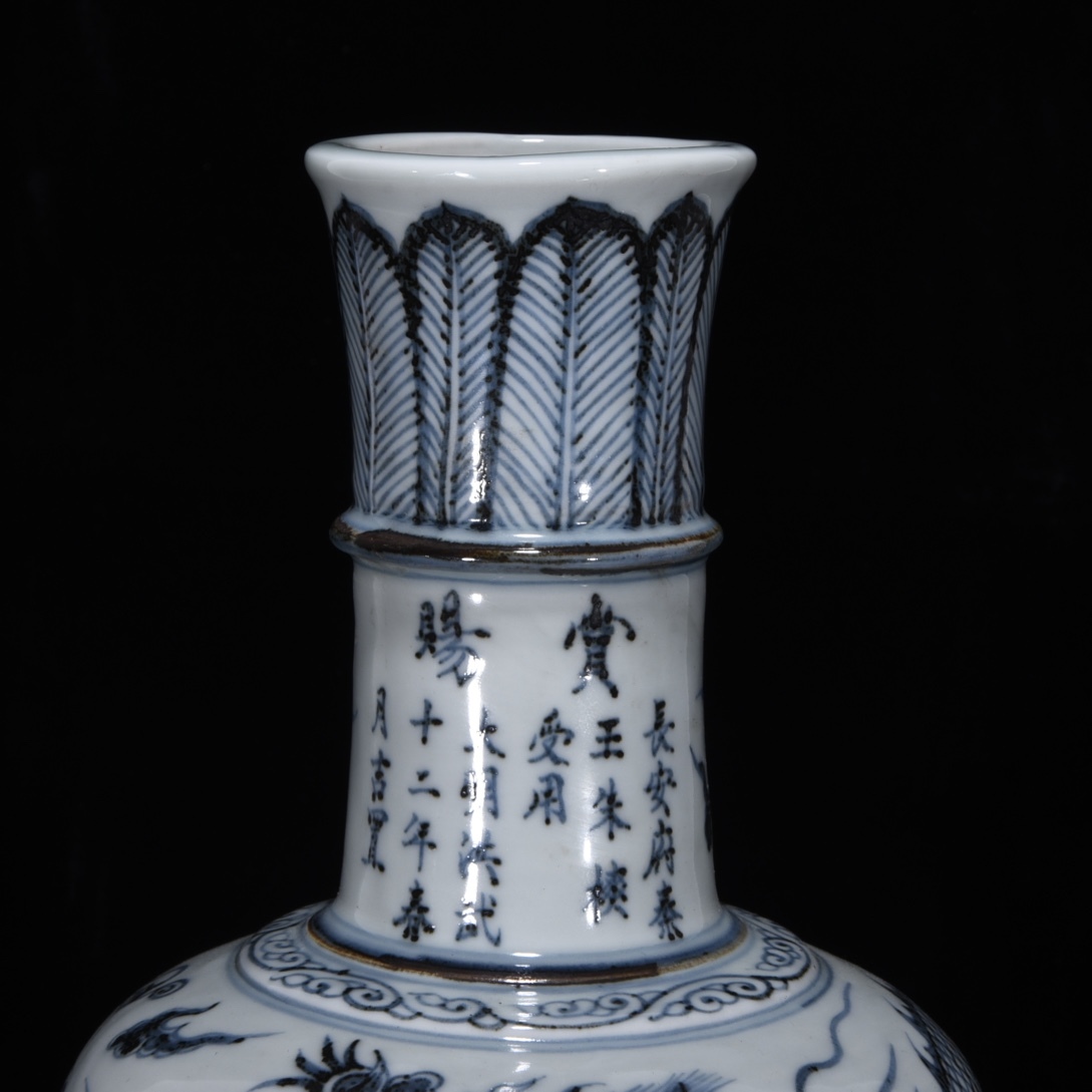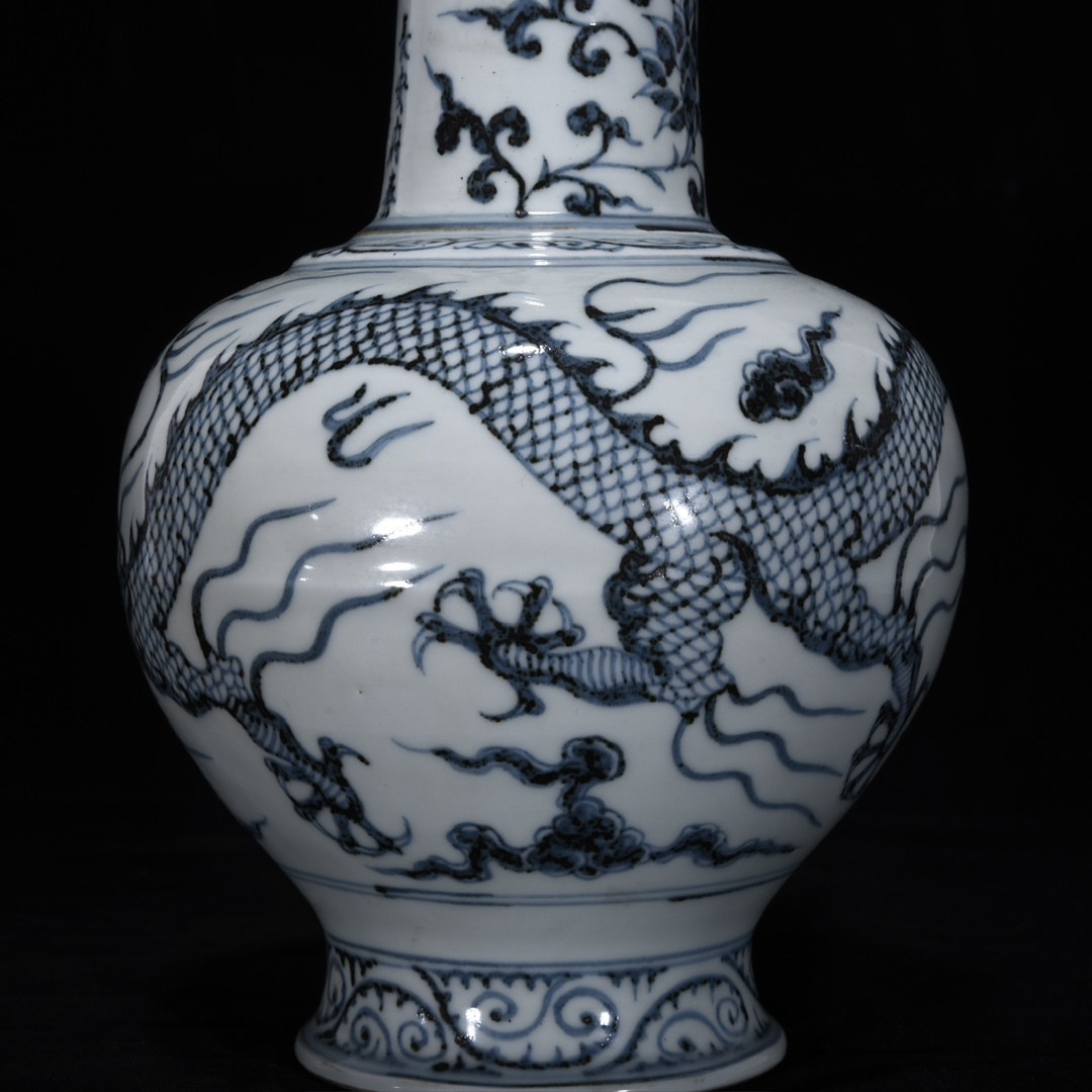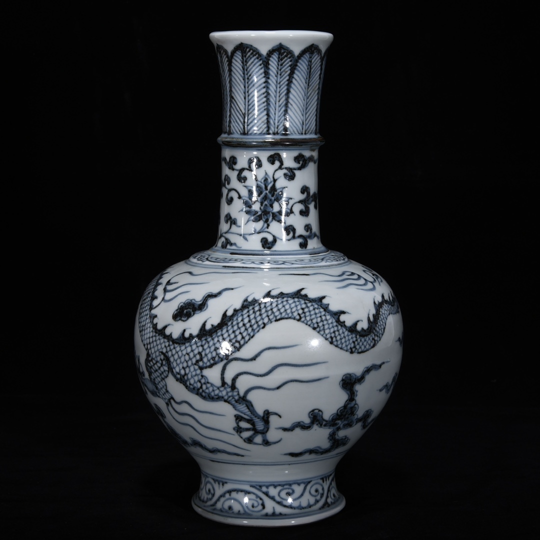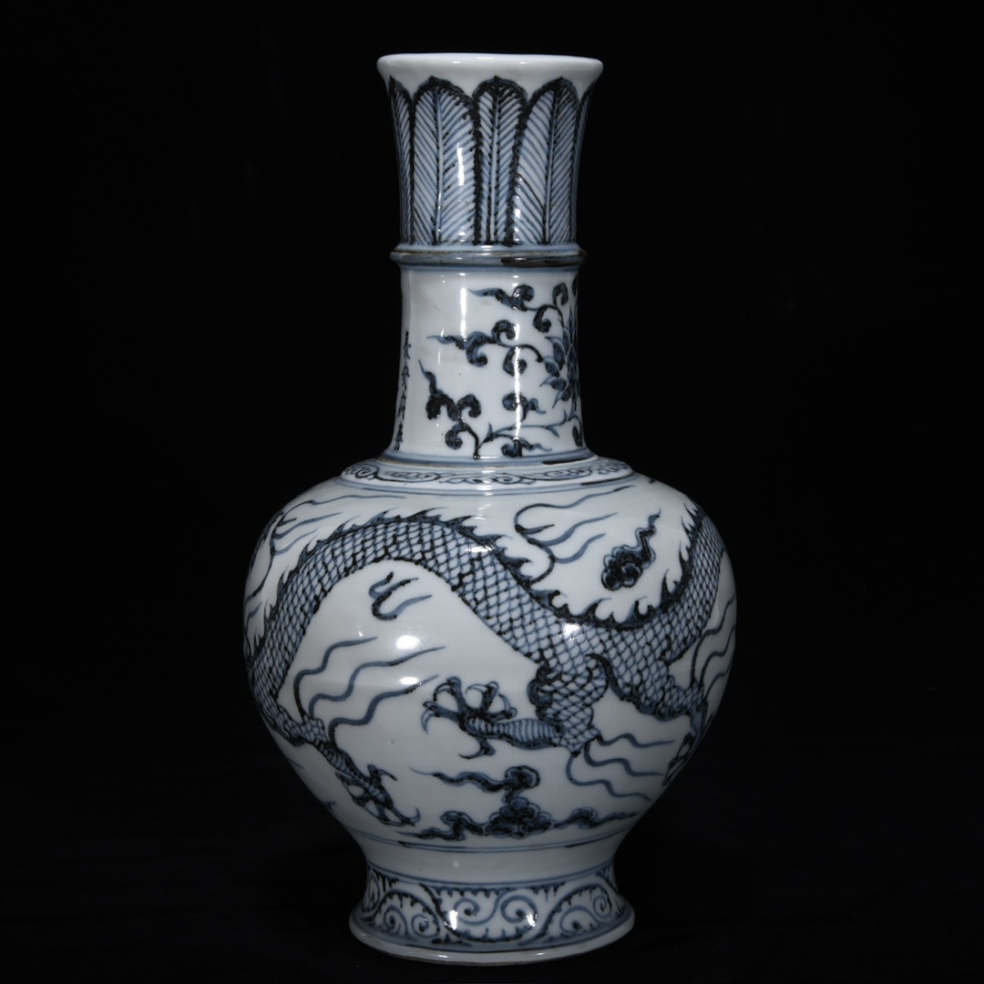 明 洪武年製款 古陶磁器 青花龍紋直徑瓶 花瓶 賞物 極細工 東洋彫刻 骨董品 古賞物 中国古玩 中国古美術