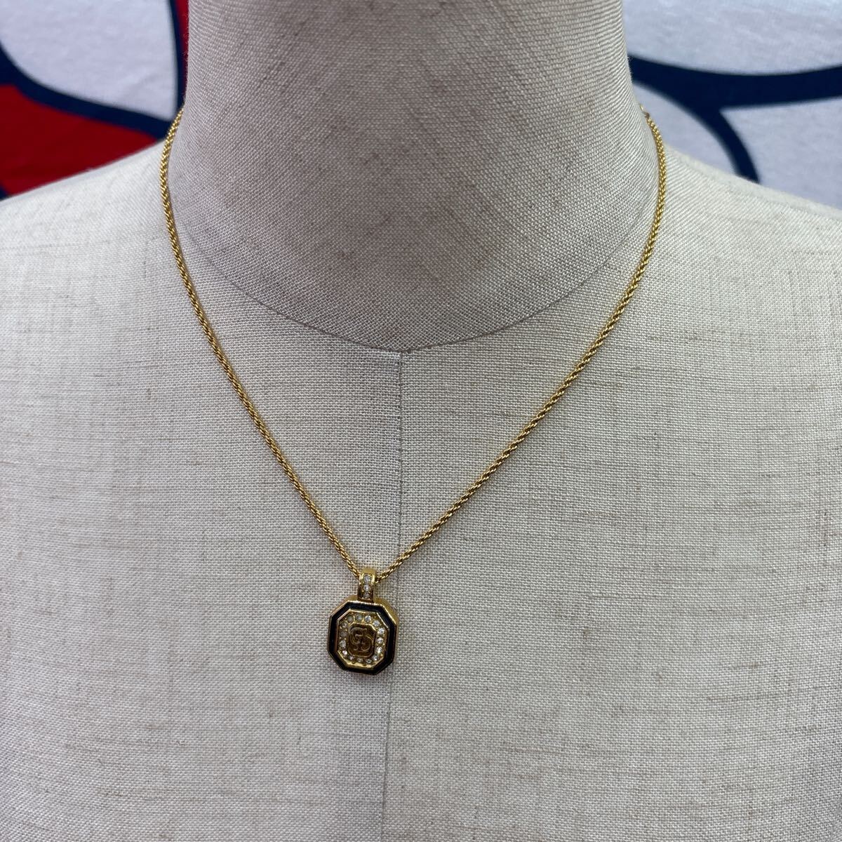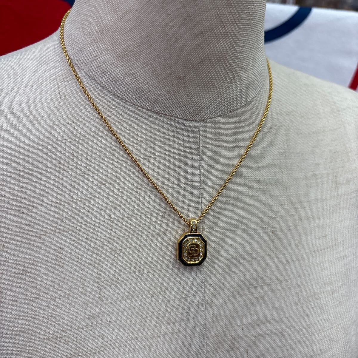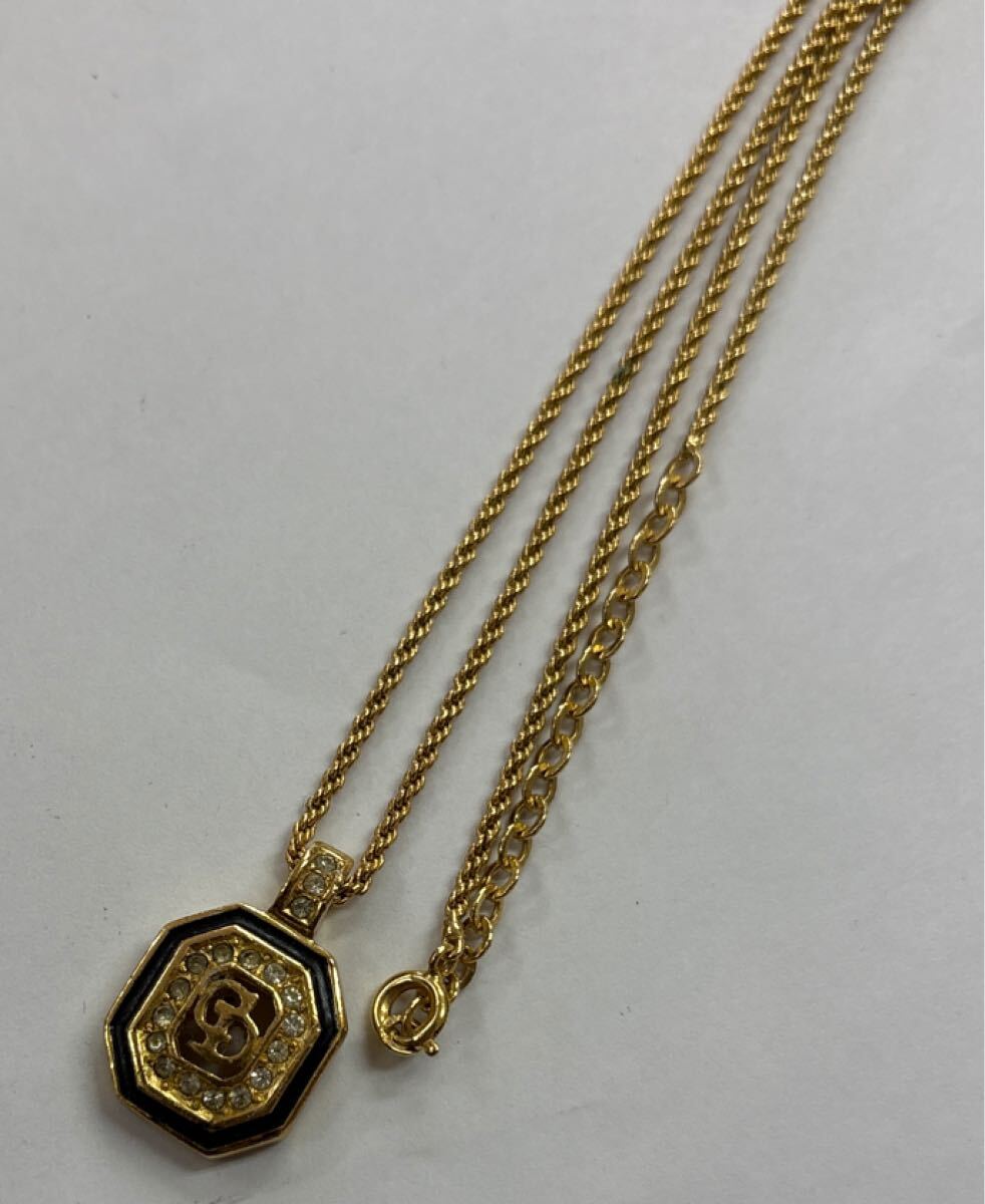 DIOR ディオール ネックレス ゴールド金具 ラインストーン ロゴ スクエア チェーン メンズ レディー