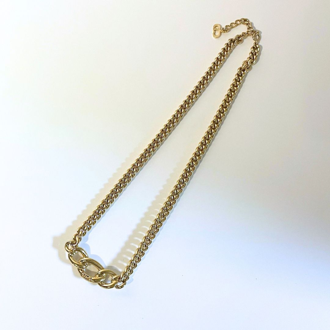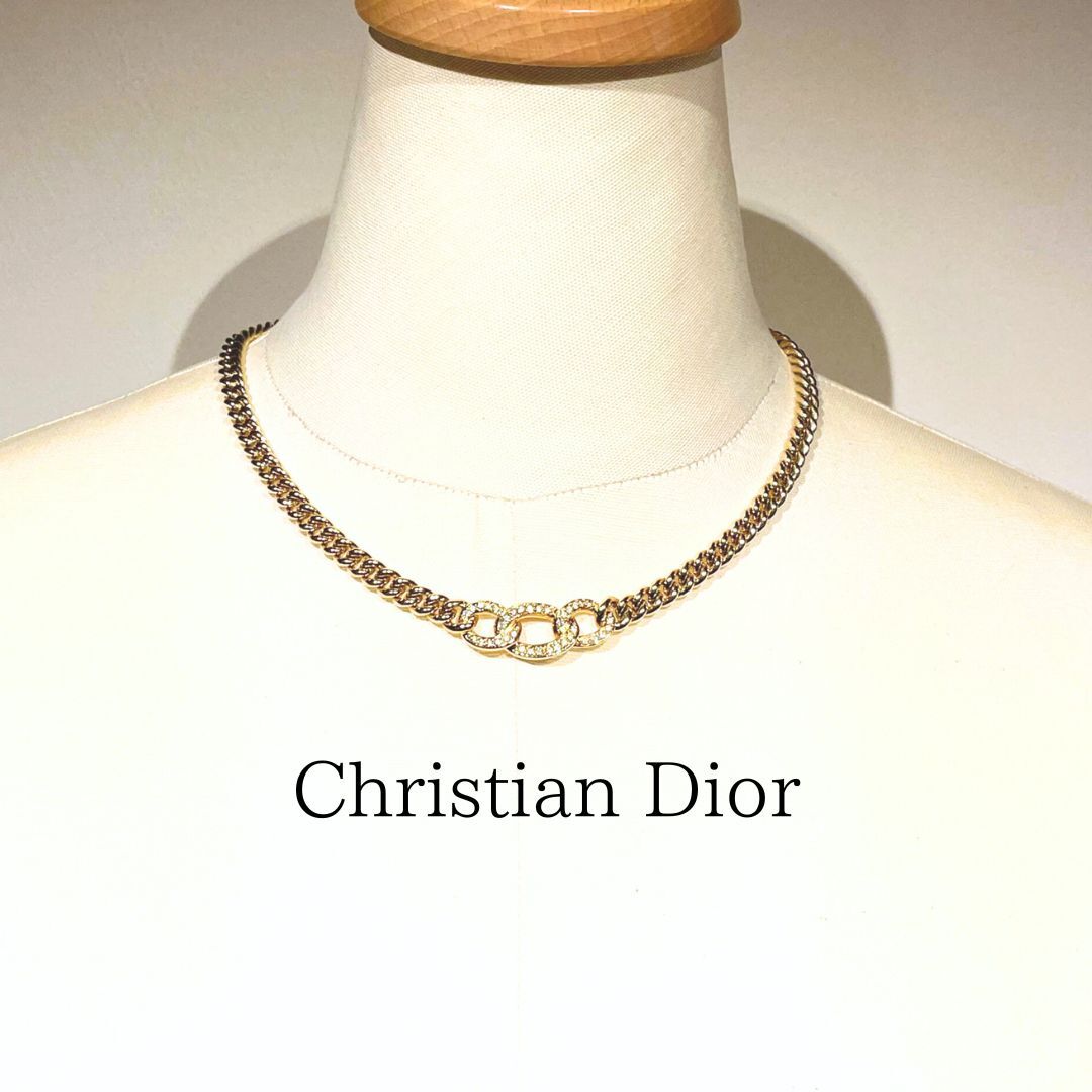 「Christian Dior CD DIOR クリスチャン ディオール チェーン ラインストーン ネックレス ゴールド」です。
