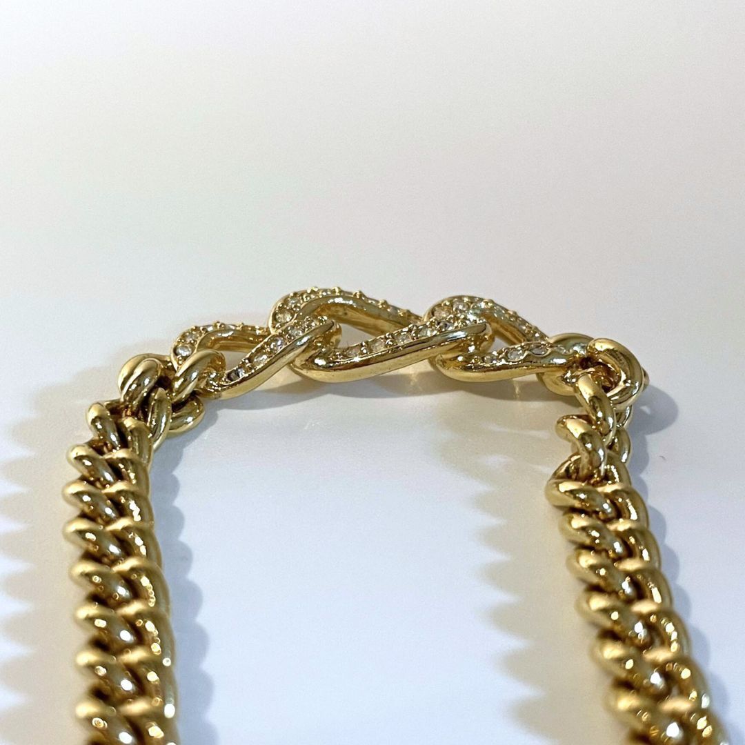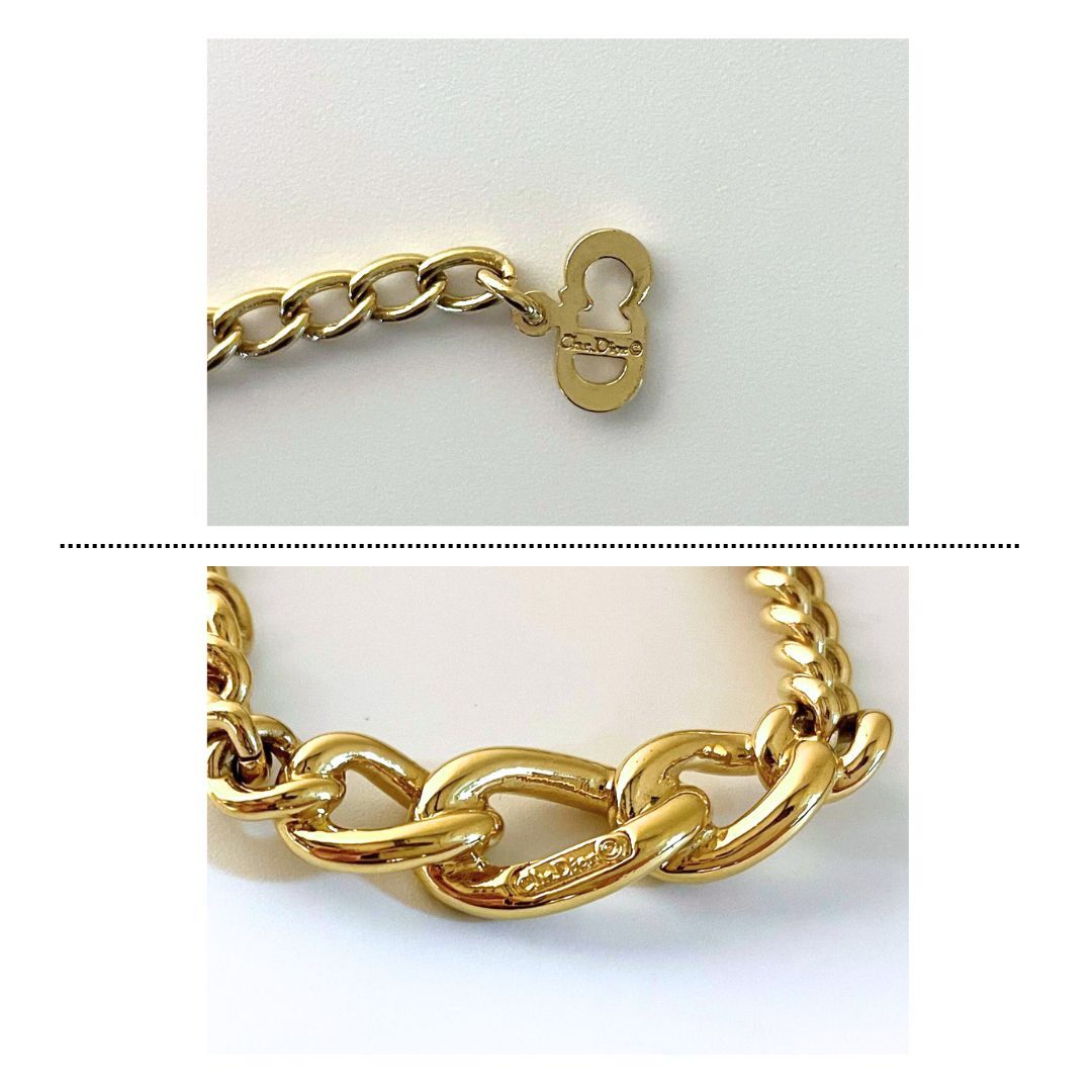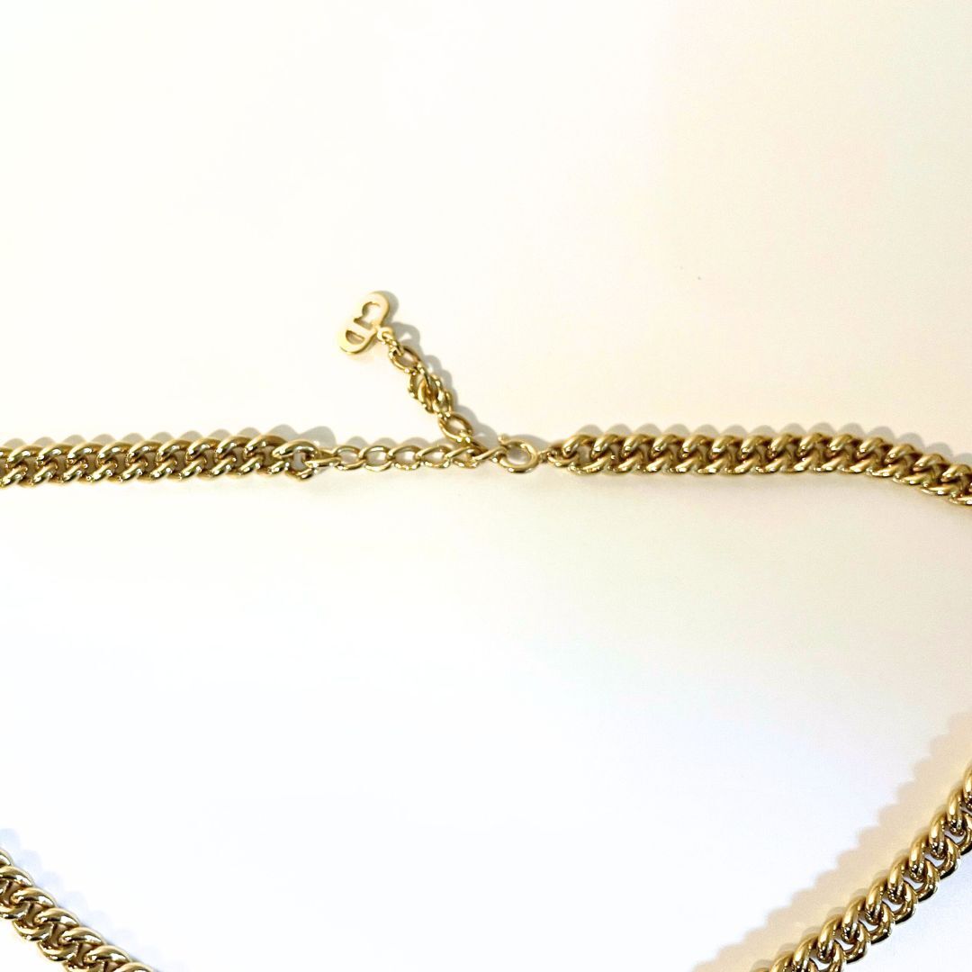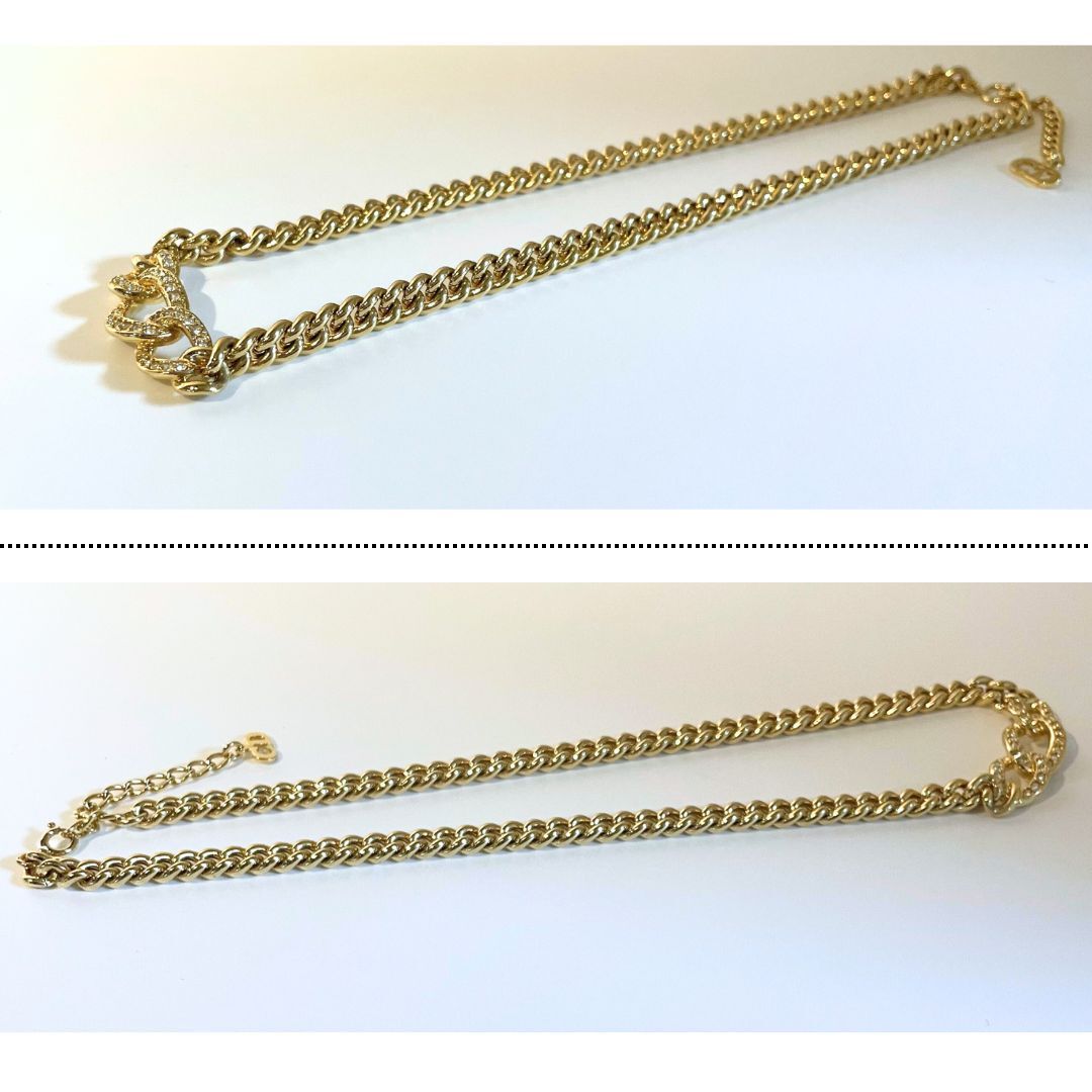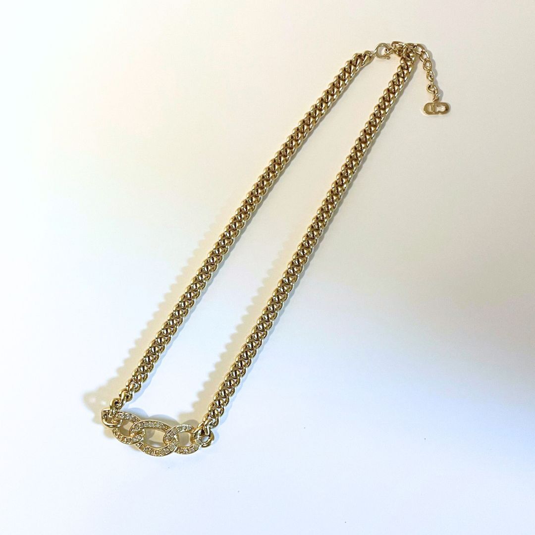 【美品】Christian Dior CD DIOR クリスチャン ディオール チェーン ラインストーン 欠落なし ネックレス ゴールド 鑑定済
