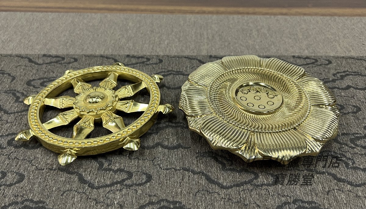 密教法具 輪宝&輪羯台 仏具 真鍮製 直径 13.5cm【送料無料】【仏具仏像専門店寶勝堂】