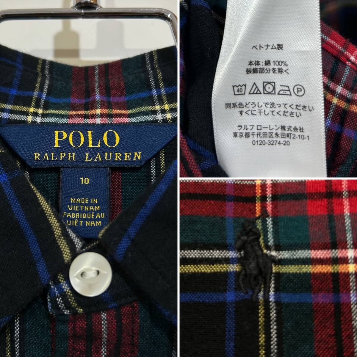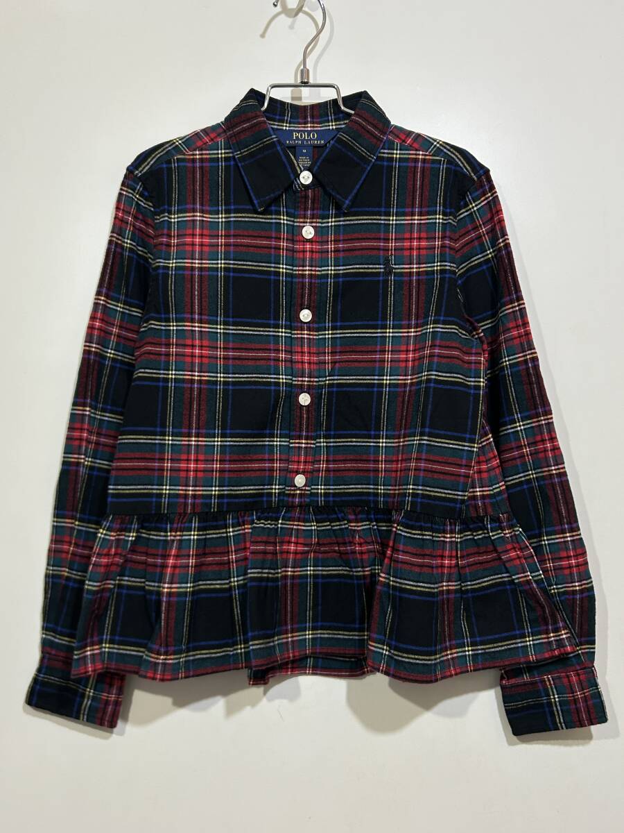 ● 美品 POLO RALPH LAUREN キッズ チェック 長袖 コットン シャツ 10 裾フリル タータンチェック ポニー刺繍 チュニック
