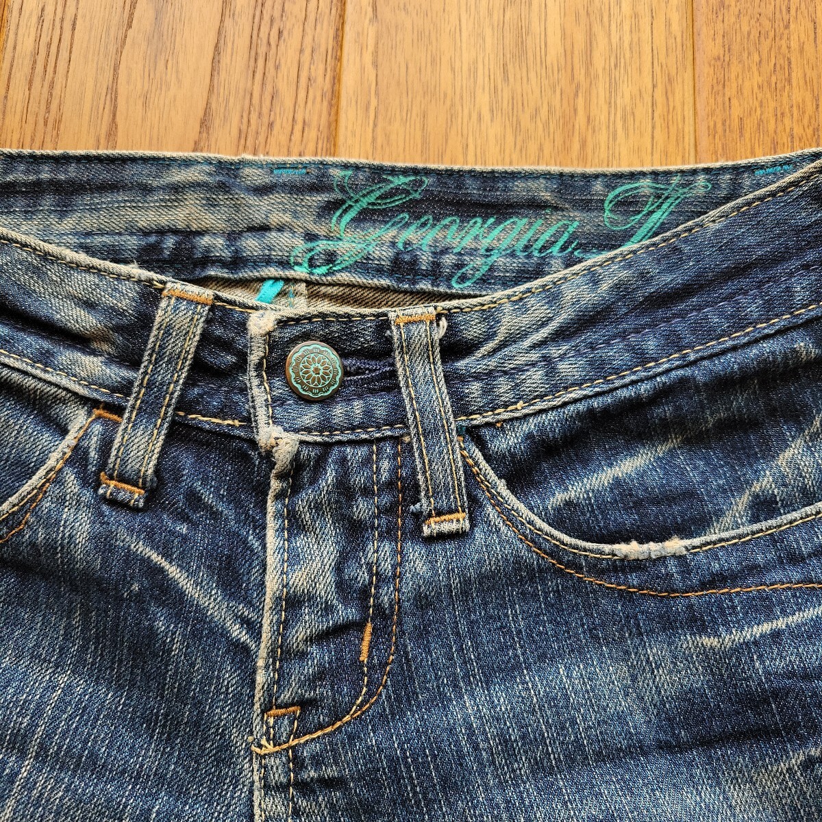 GEORGELOVEジーンズです。状態は概ね良好です。サイズ(26ー4):ウエスト56 ワタリ26 裾巾19、5 股下71、5