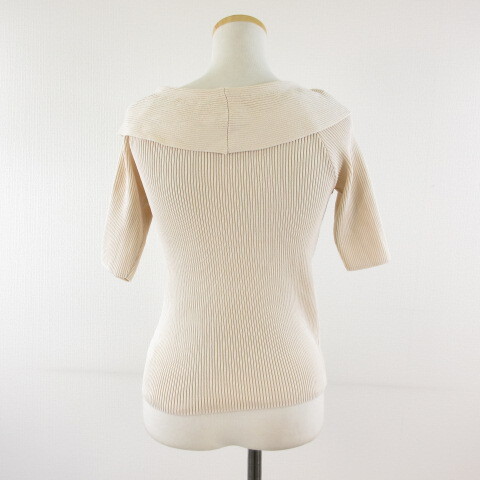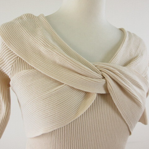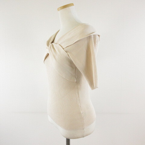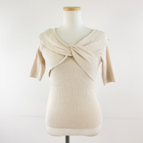 アースミュージック&エコロジー EARTH MUSIC & ECOLOGY フロントクロスリブニットプルオーバー 半袖 ベージュ アイボリー F *T754 レディース