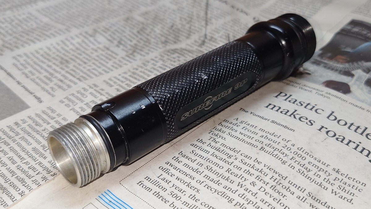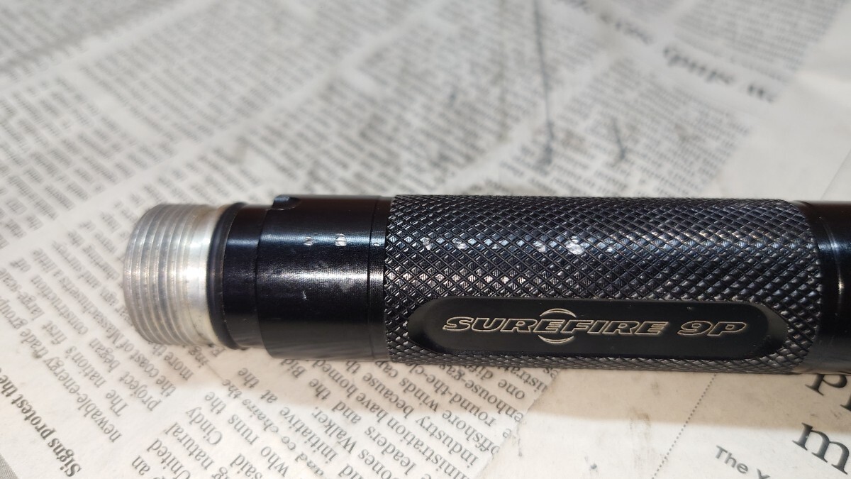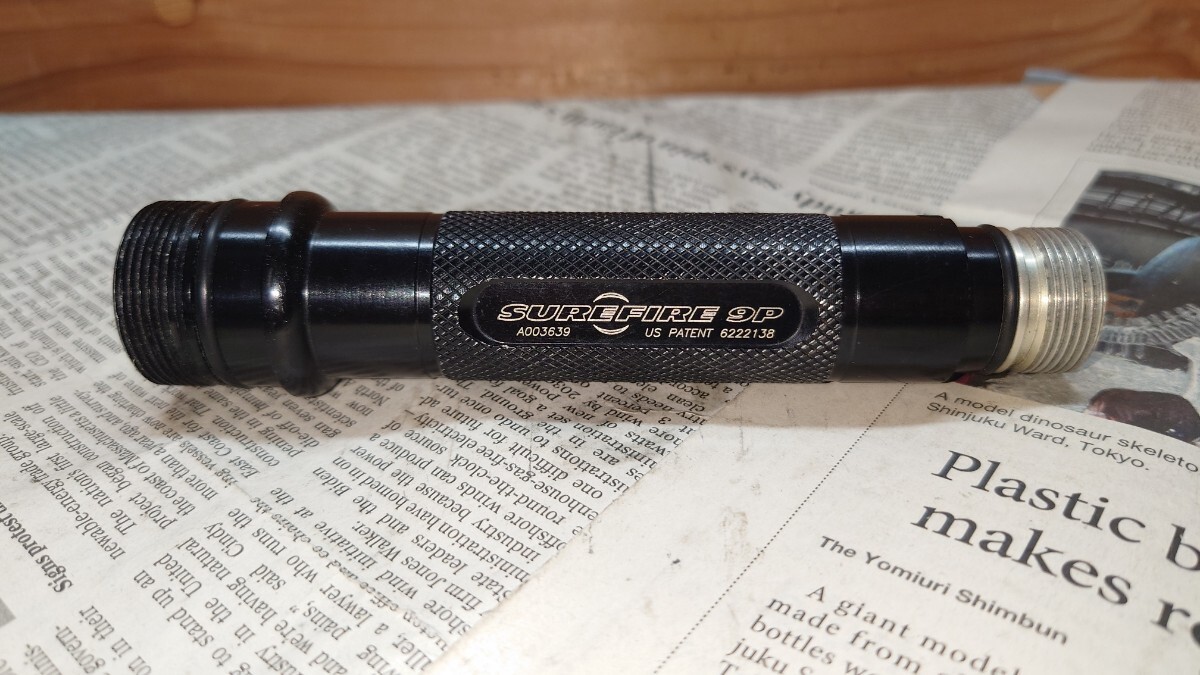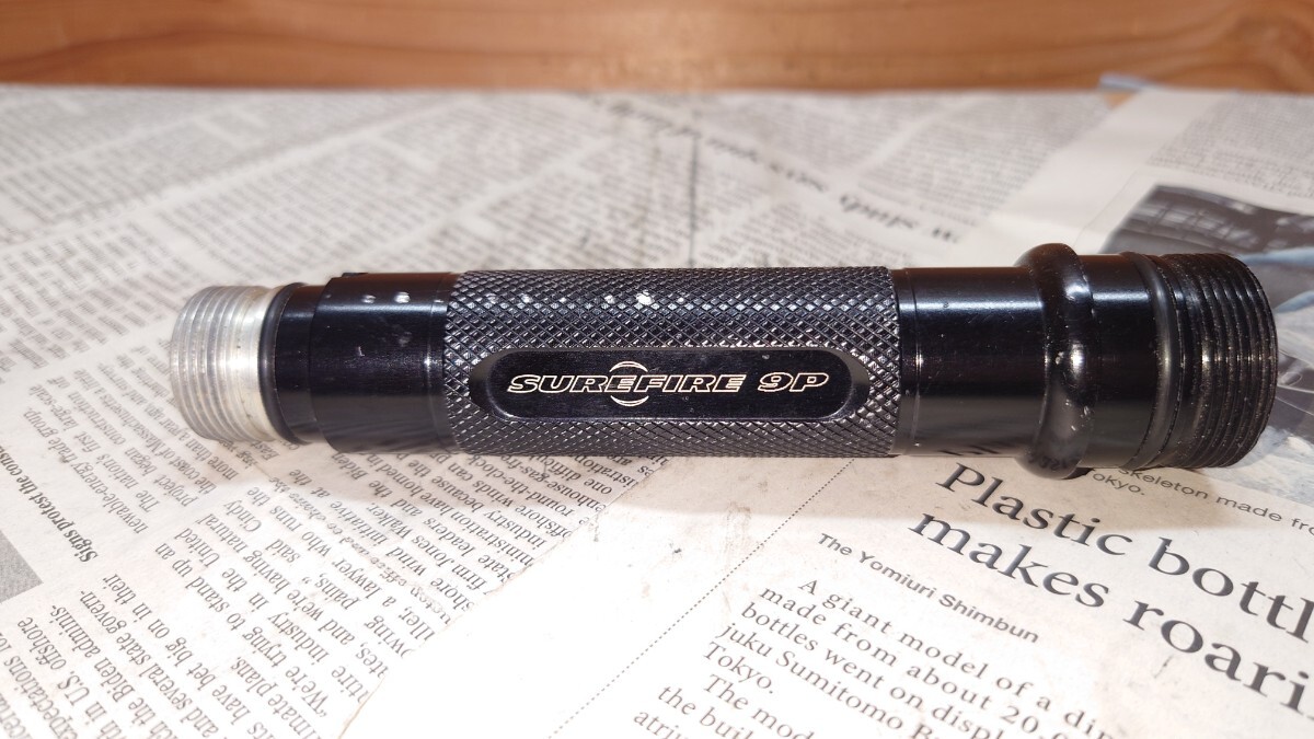 【中古】SUREFIRE 9P-BK 3セル9V純正ボディ 旧ロゴになります。ボディにイモネジの跡があります。写真にあるものがすべてになります。中古ですので状態は画像で判断して下さい。神経質な方や完璧を求める方は入札をご遠慮ください。ノークレームノーリターンで宜しくお願い致します。不明点はご質問ください。