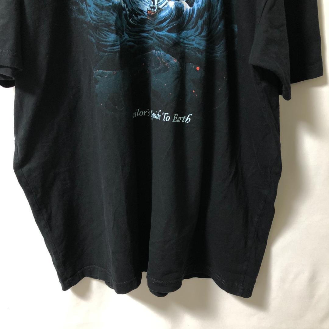 □タイプ:ブラックプリント Tシャツ 半袖 ビッグシルエット オーバーサイズ 大きいサイズ 米国サイズ ブラック 黒 メンズ 帆船
