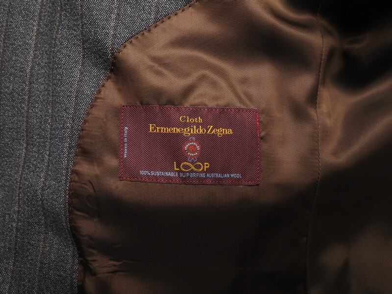 本切羽、AMFステッチ、お台場仕立て、キュプラ裏地、毛芯を用いた縫製など、既製品のブランドスーツではここまで仕立てにこだわったスーツは手に入りません。サルトリア仕立ての最上級モデルです。ファブリックはイタリアを代表する生地ブランド、ゼニア社のウール100%生地を使用。ループは、「ゼニア社が今までであれば廃棄していた余剰に取れた羊毛をブレンド」して作られたシリーズです。廃棄されていた部分がブレンドされているとはいえ、ゼニア社の最高級シリーズの原毛が使用されているため、風合いや高級感はゼニア社そのものと言えるサステナブル素材です。厚手の綾織生地で冬季通して活躍します。