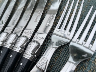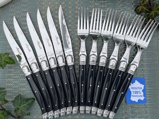 2.5mm幅ステンレス フランス製Laguiole高級テーブルナイフ6本とフォーク6本ラギオール | |||