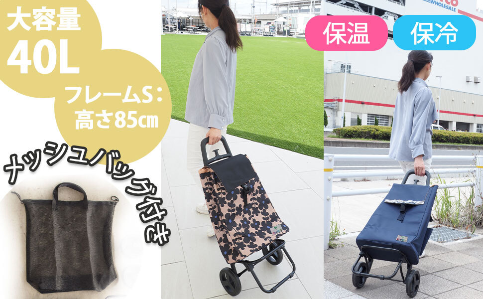【材質】フレーム:スチール バッグ表地:ポリエステル100% バッグ裏地:アルミ蒸着フィルム メッシュバッグ:ポリエステル100% タイヤ:EVA樹脂