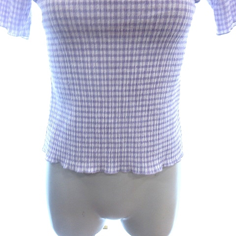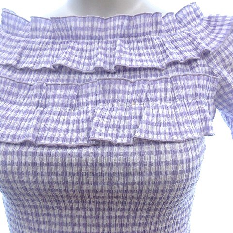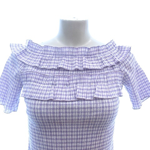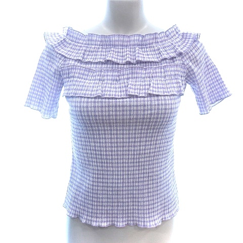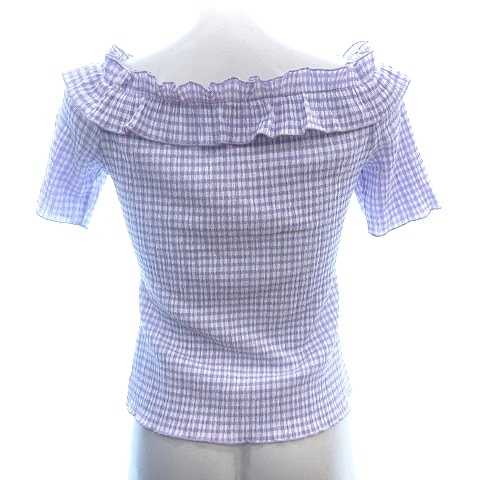 ジルスチュアート JILL STUART シャツ ブラウス オフショルダー フリル ギンガムチェック 半袖 F 紫 パープル /AU レディース