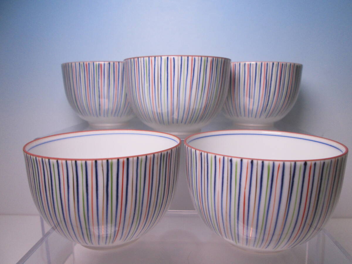 ☆お料理屋さんの器 橘吉 金彩 麦藁手 お茶呑み茶碗 五客 共箱付 湯呑/懐石/割烹/日本料理
