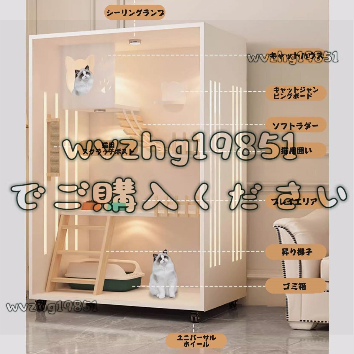 木製キャットケージ マルチレベル・スペース ペットケージ クリエイティブデザイン ビッグスペース 猫 90x60x150cm