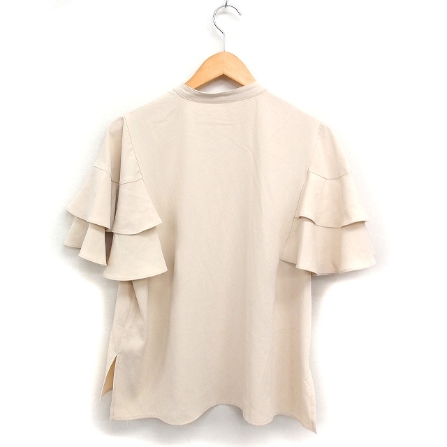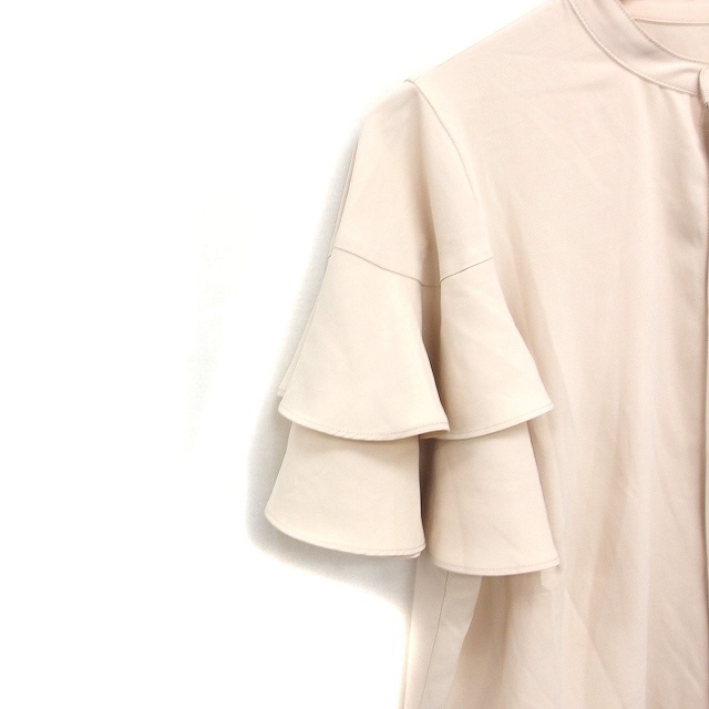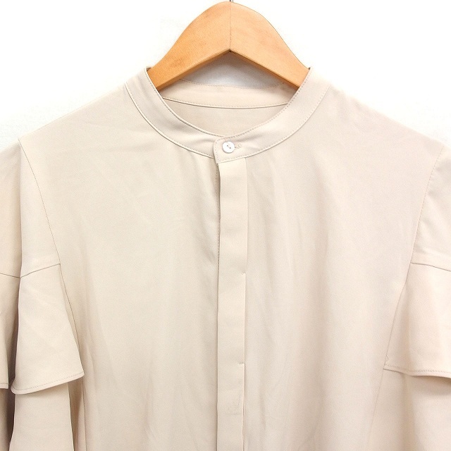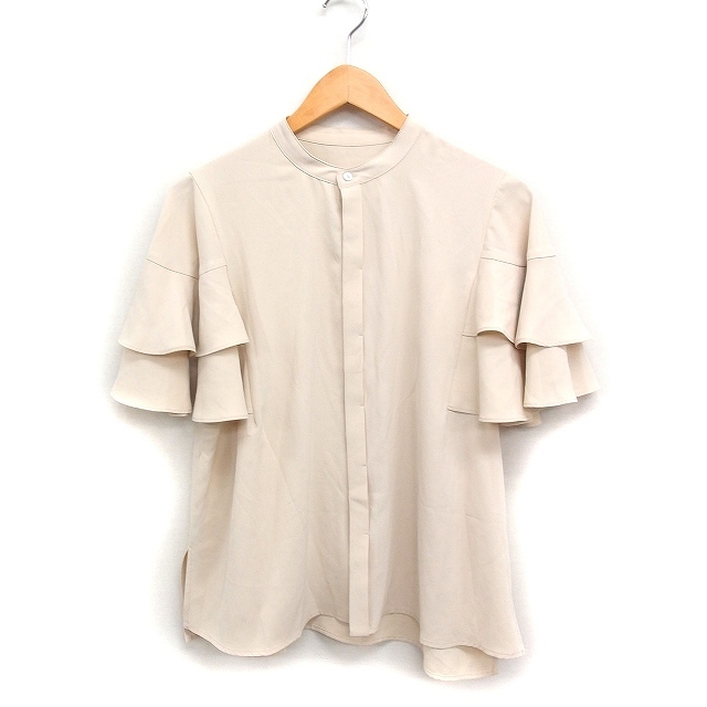 オペークドットクリップ OPAQUE.CLIP ダブルフリルスリーブ ブラウス バンドカラー 無地 38 M ライトベージュ /FT15 レディース