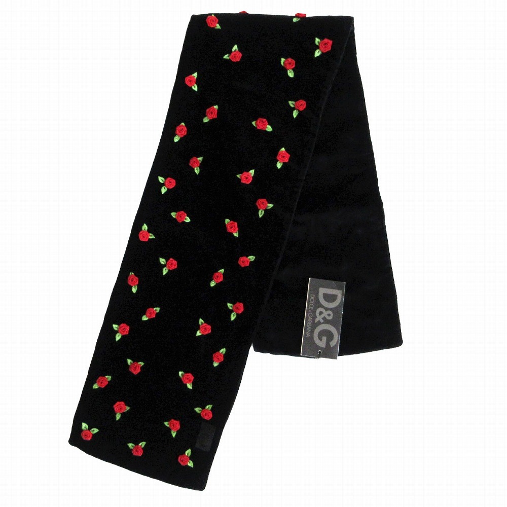 【D&G ドルチェアンドガッバーナ バラ刺しゅう ベロア ストール マフラー ブラック サイズTU レディース】 | |