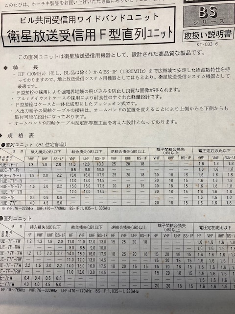 衛星放送受信用F型直列ユニット ビル共同受信用ワイドバンドユニット ホーチキ