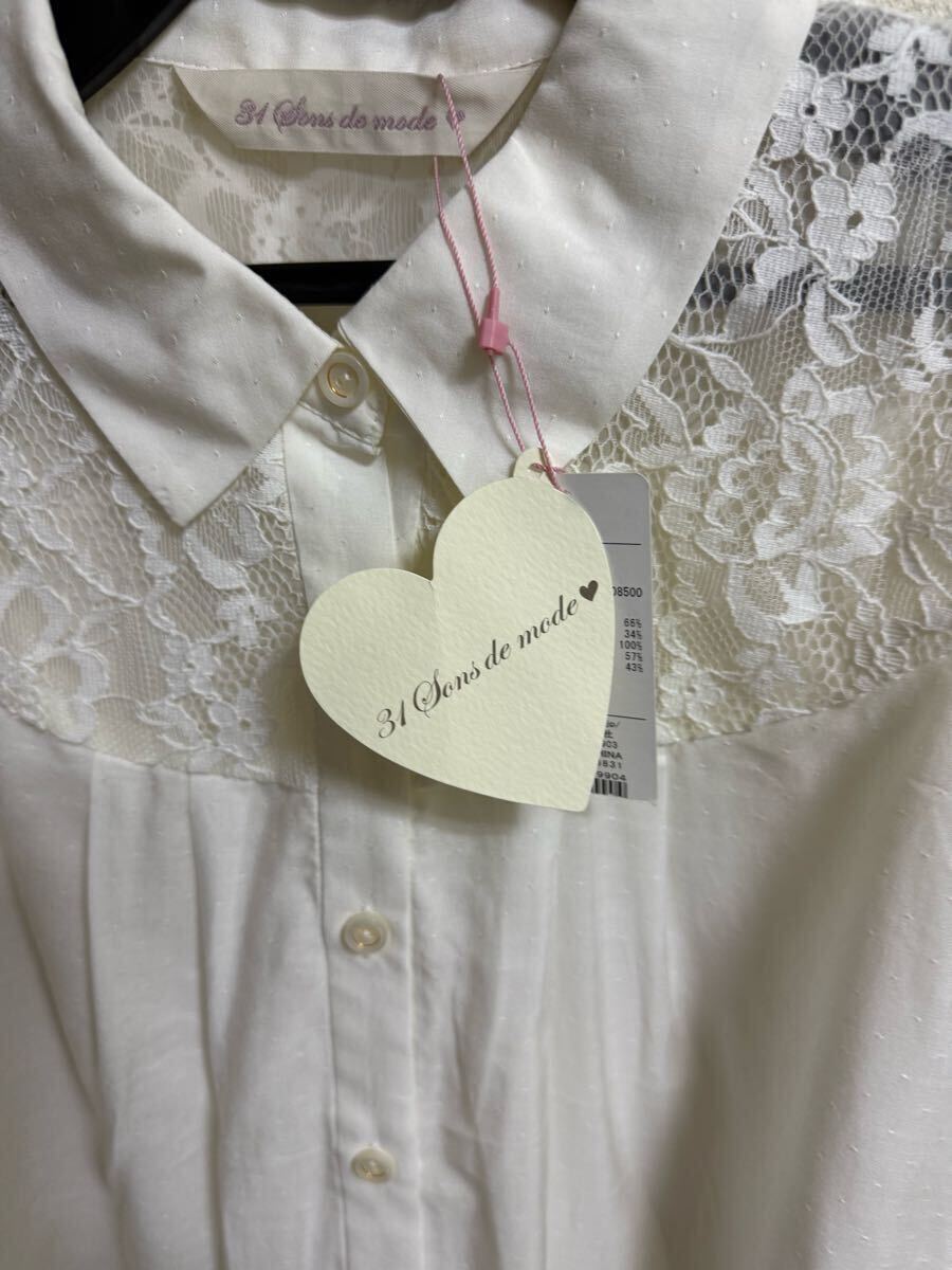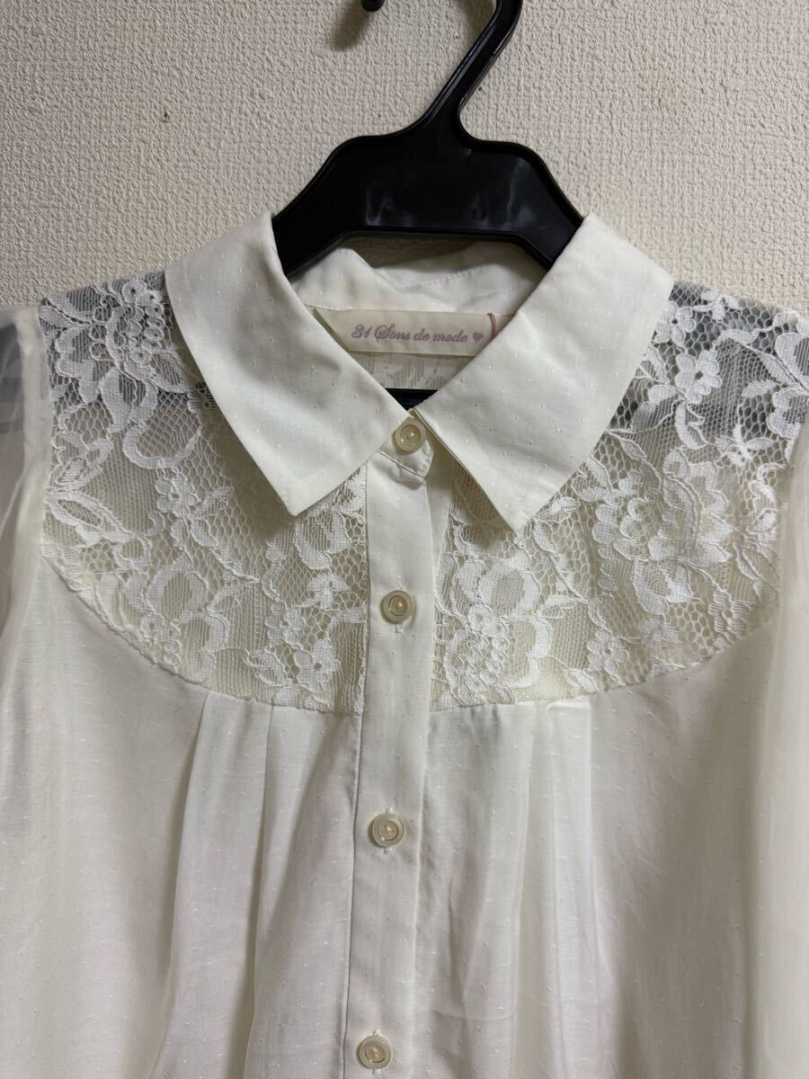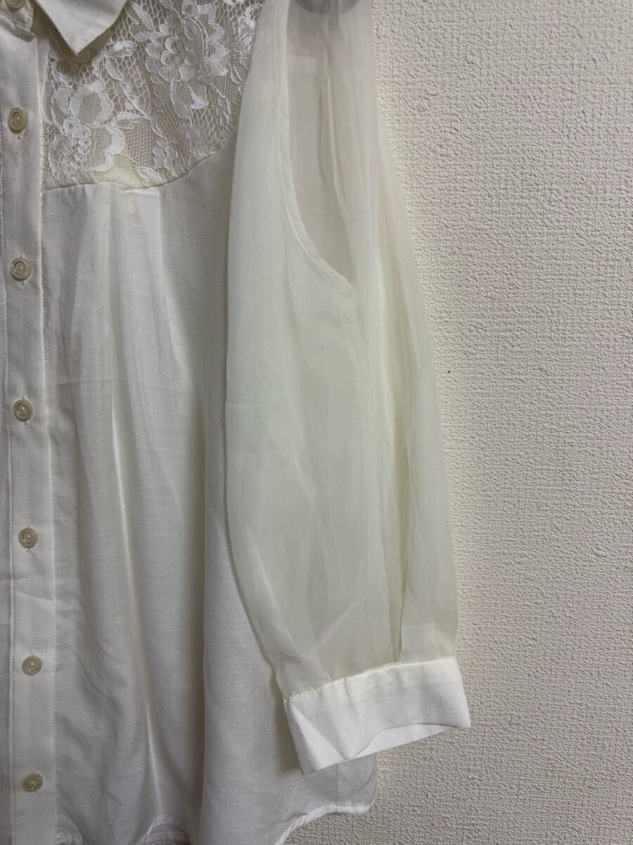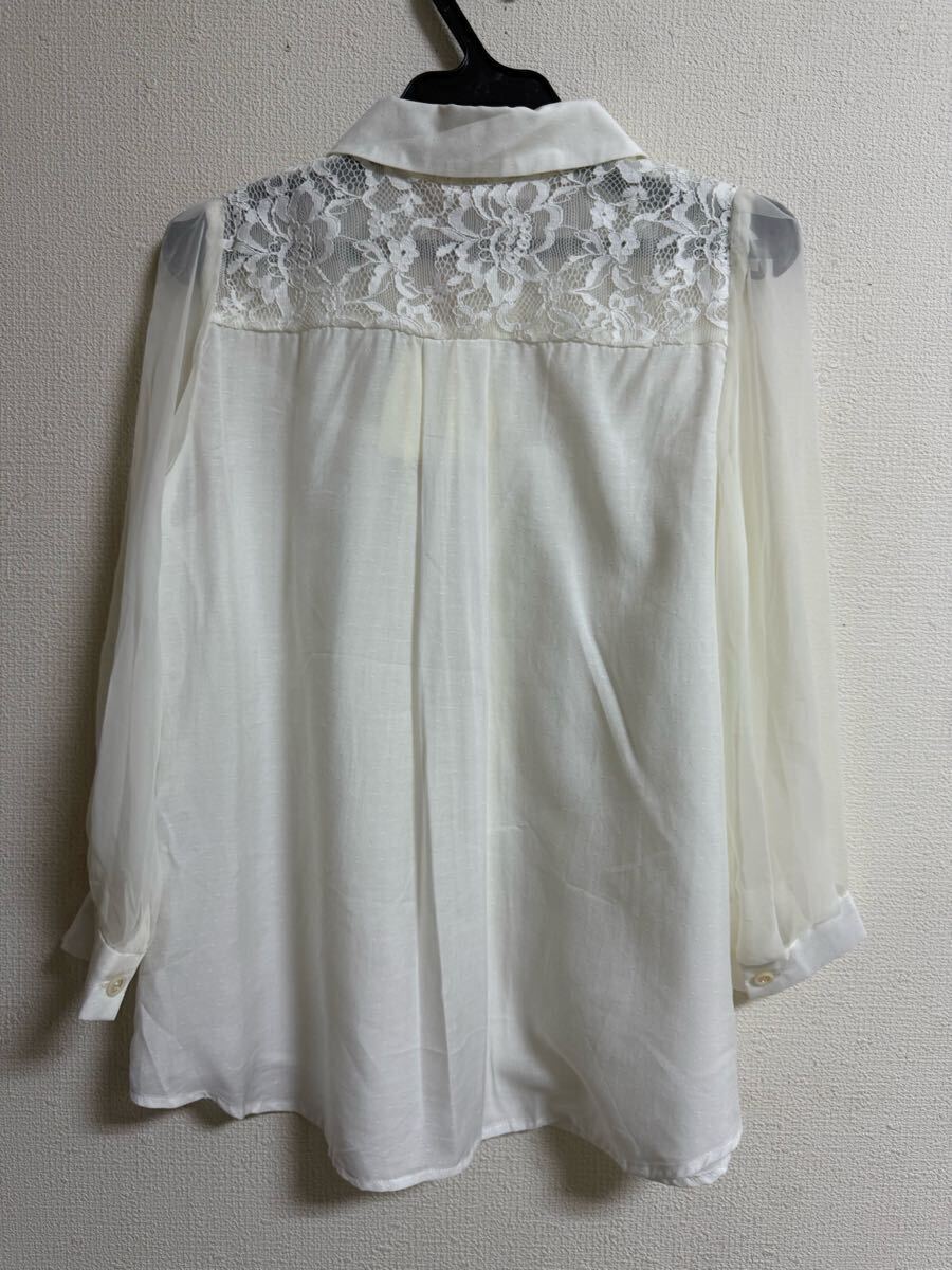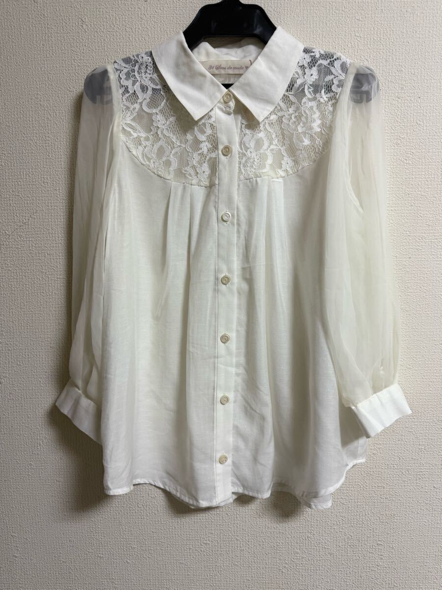 レースや袖の透け感があるオーガンジーが可愛らしい印象のブラウスです。
