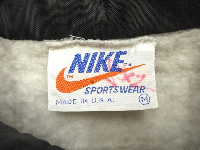 ナイキ NIKE 70s オレンジタグ コーチジャケット 裏ボア USA製 フットボール プリント 刺繍 ヴィンテージ ブラック M メンズ