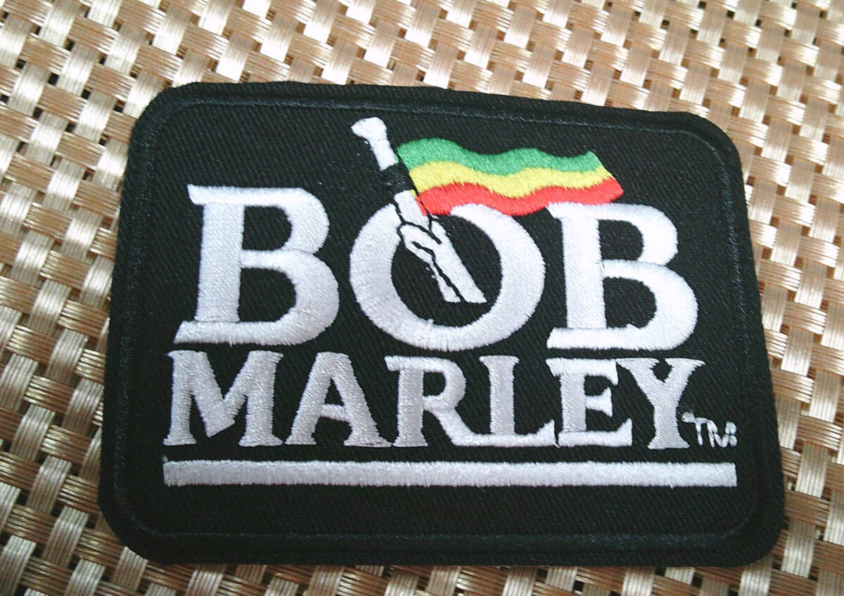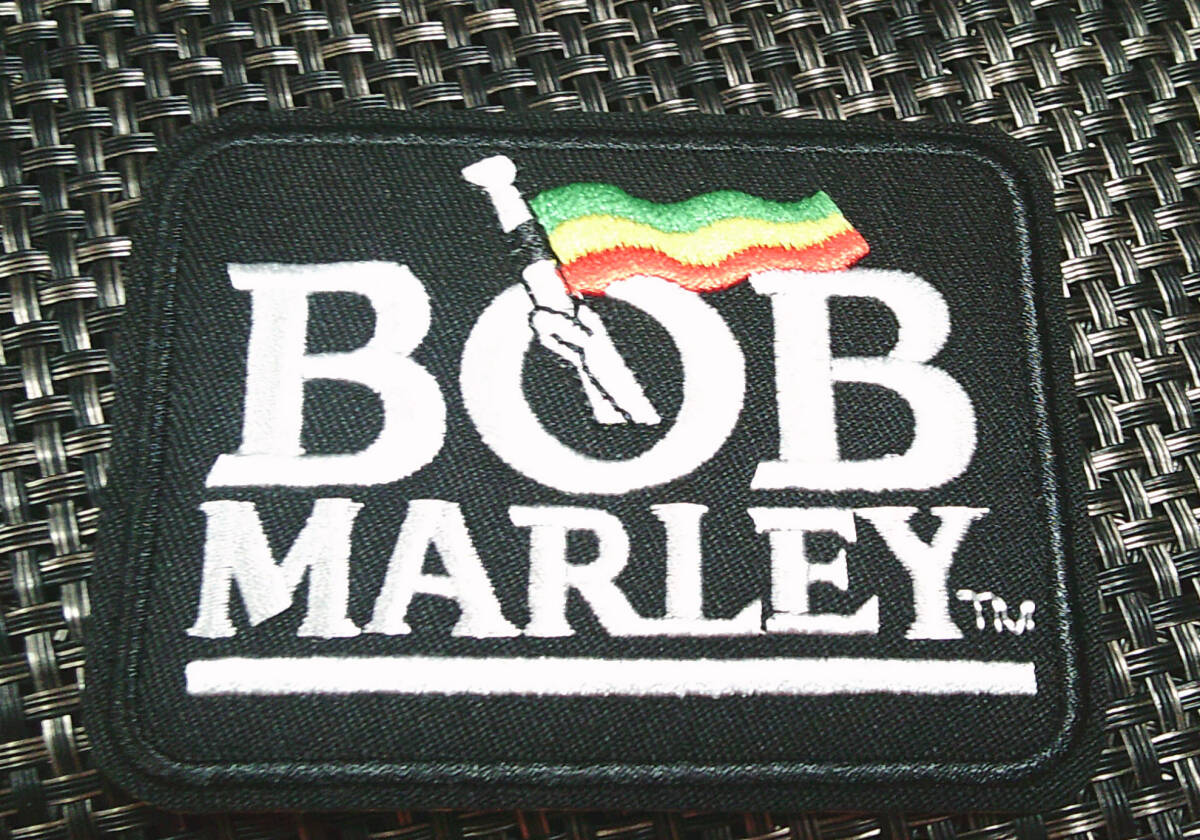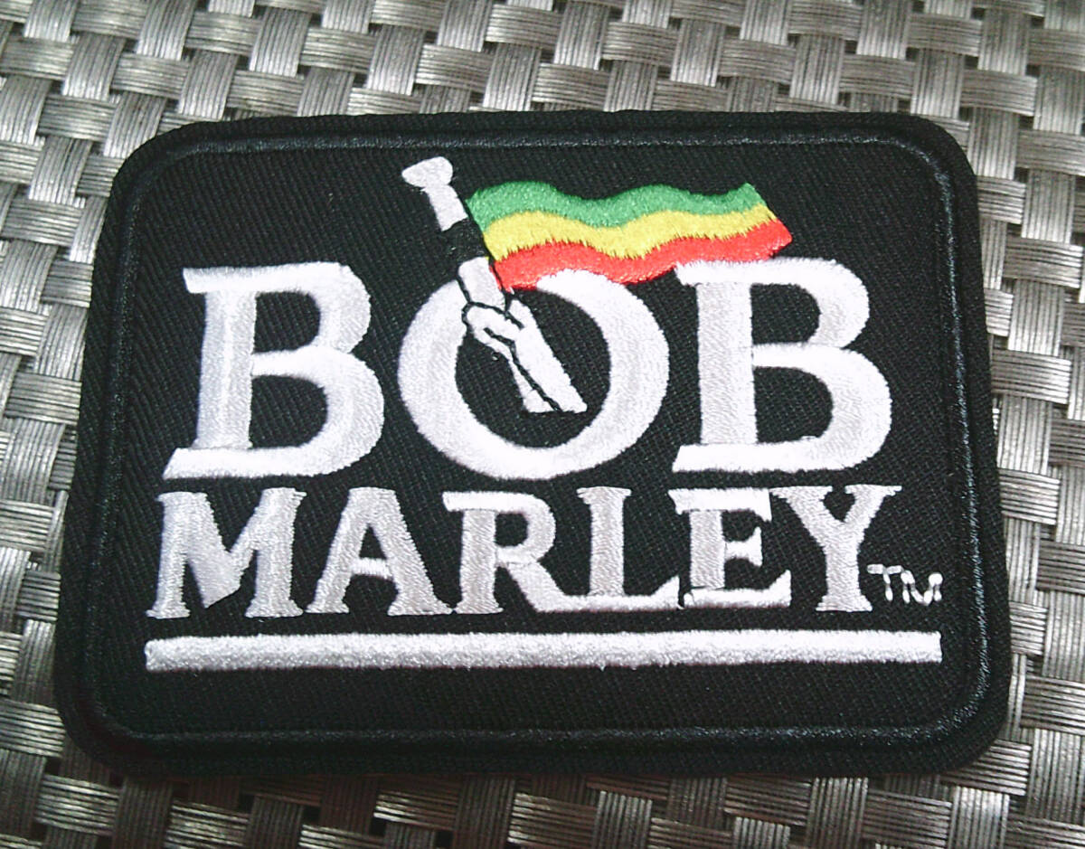 《黒四BM音楽》■角丸四角 黒白◆新品 BOB MARLEY ボブ・マーリージャマイカ シンガーソング ミュージシャン レゲエ ギター 刺繍ワッペン