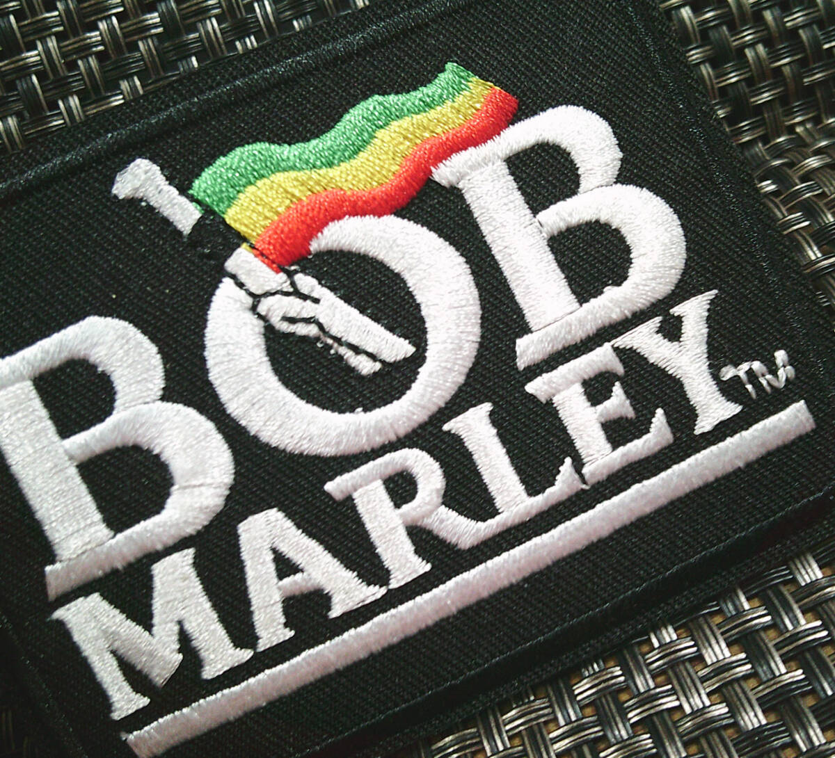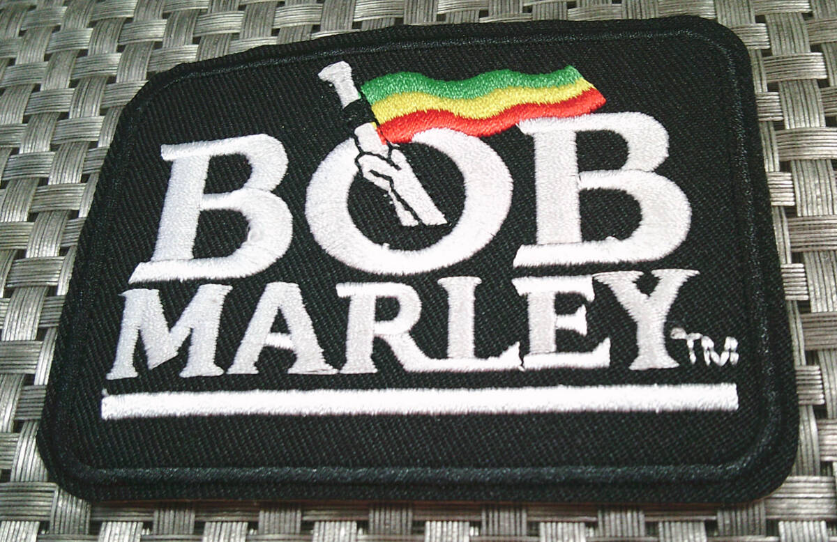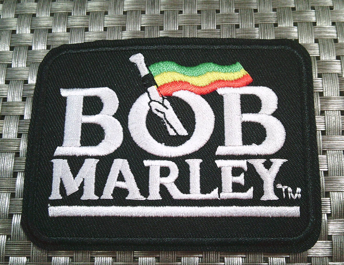 《黒四BM音楽》■角丸四角 黒白◆新品 BOB MARLEY ボブ・マーリージャマイカ シンガーソング ミュージシャン レゲエ ギター 刺繍ワッペン