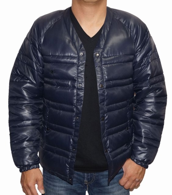 商品名 | アールニューボールド R.NEWBOLD 中綿 ジャケット 襟なし 紺 メンズ ノーカラー ネイビー 冬物 ライオンマーク |