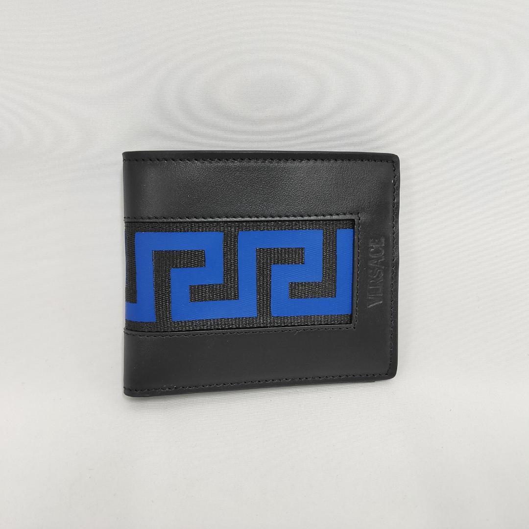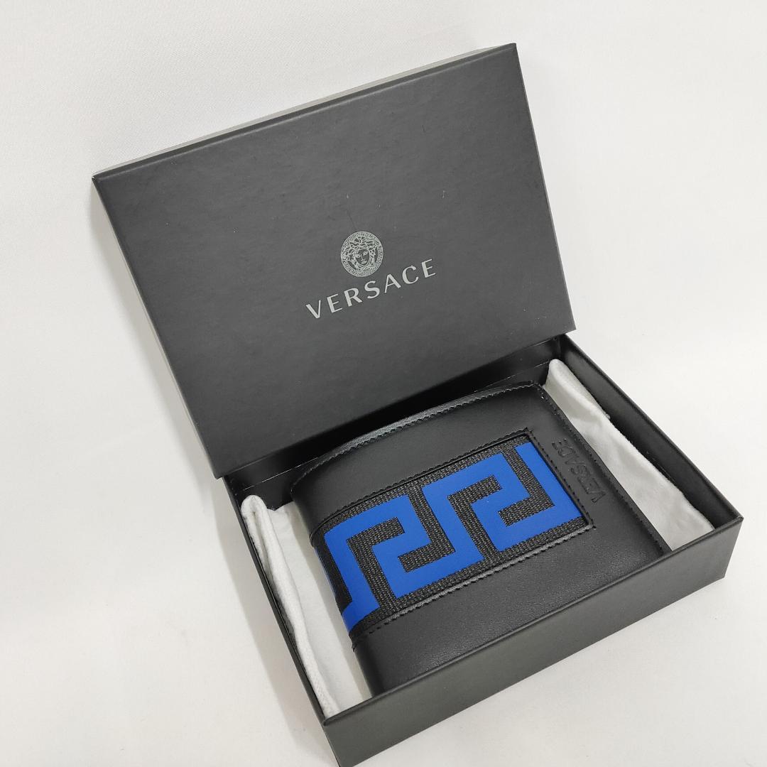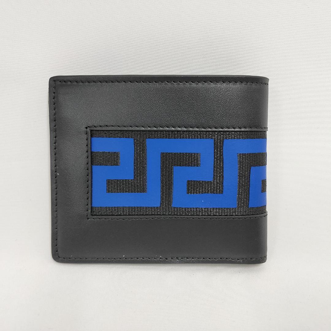 ○★新品 未使用 VERSACE グリース コンパクトウォレット 定番二折財布 ブラック×ブルー(ヴェルサーチェ)○●