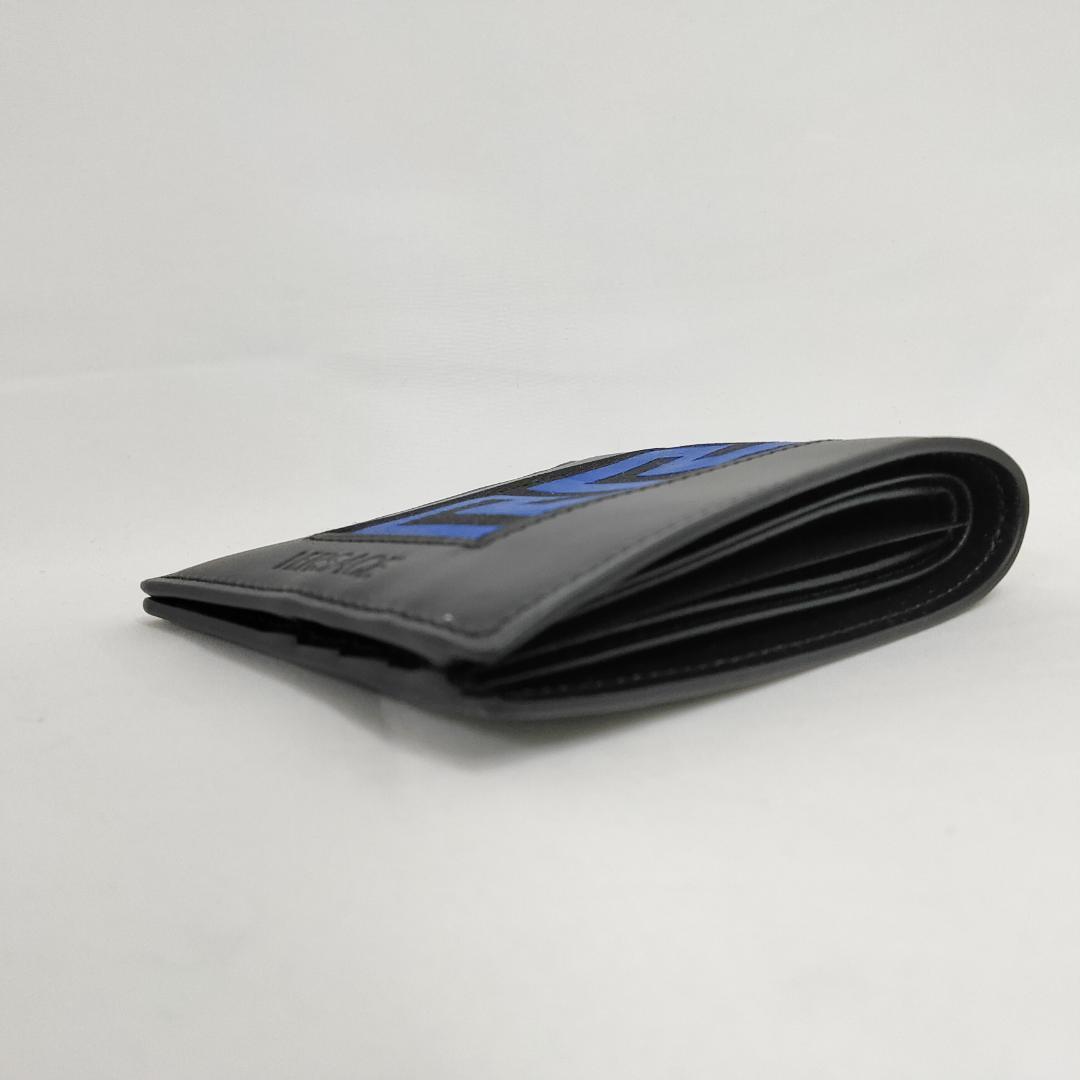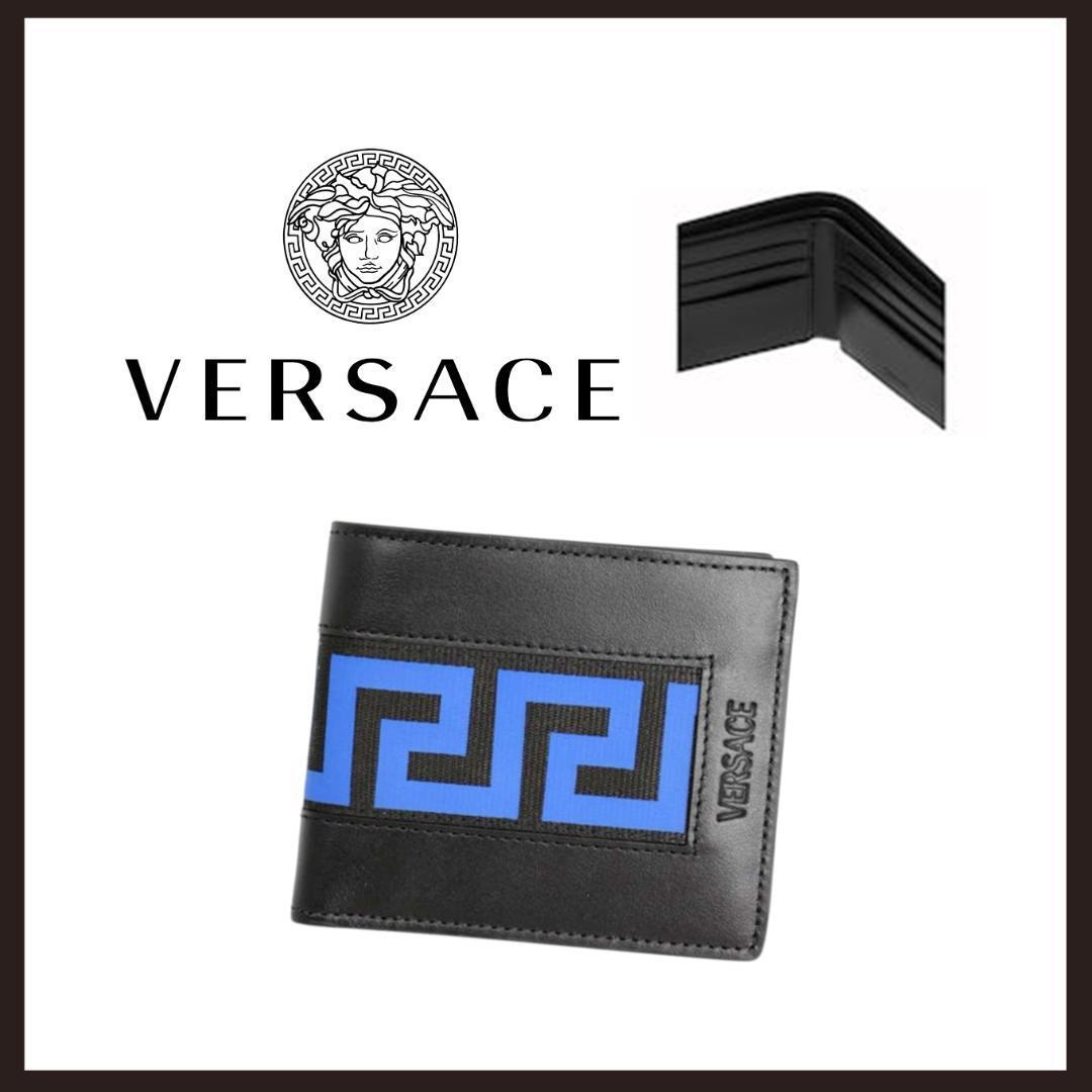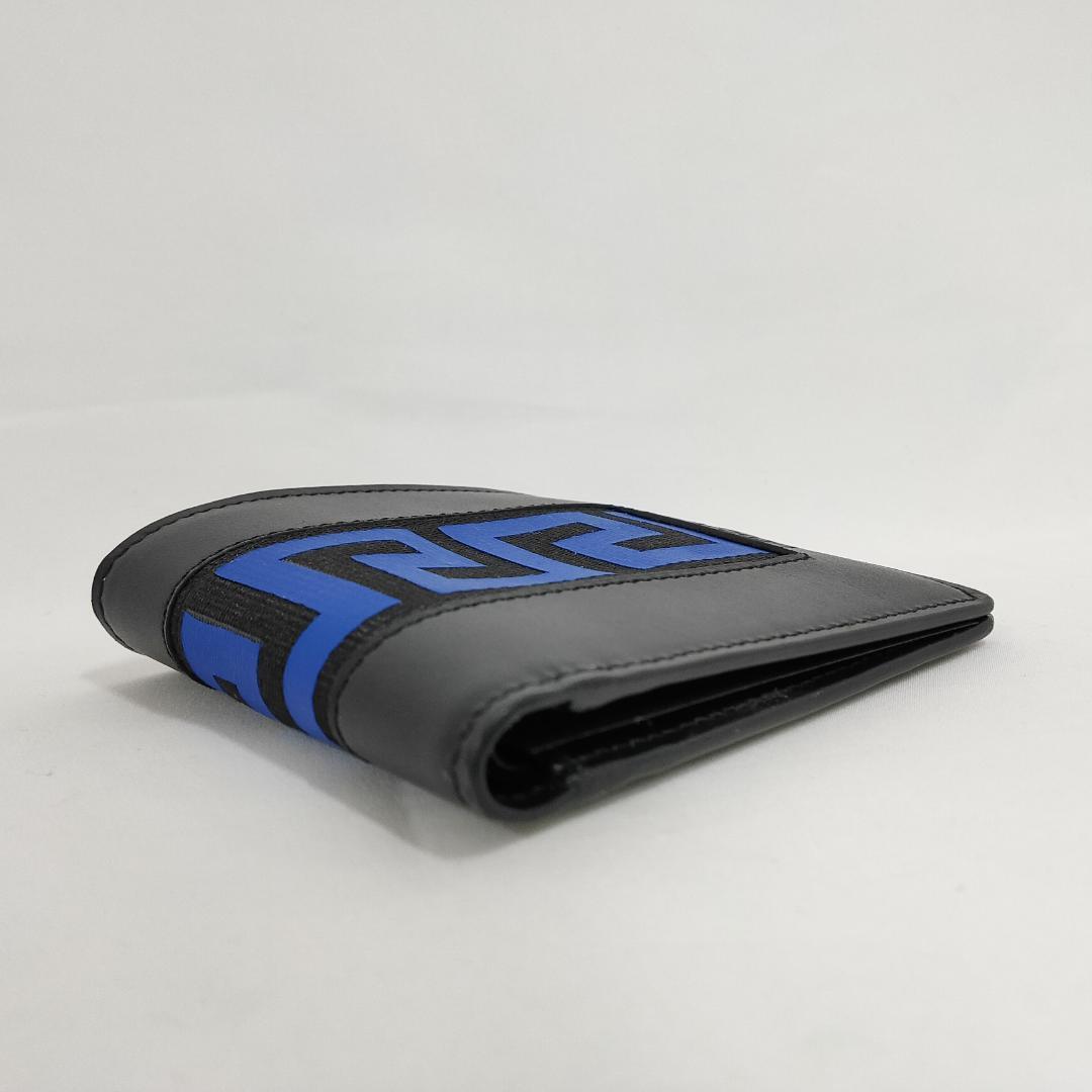 ○★新品 未使用 VERSACE グリース コンパクトウォレット 定番二折財布 ブラック×ブルー(ヴェルサーチェ)○●
