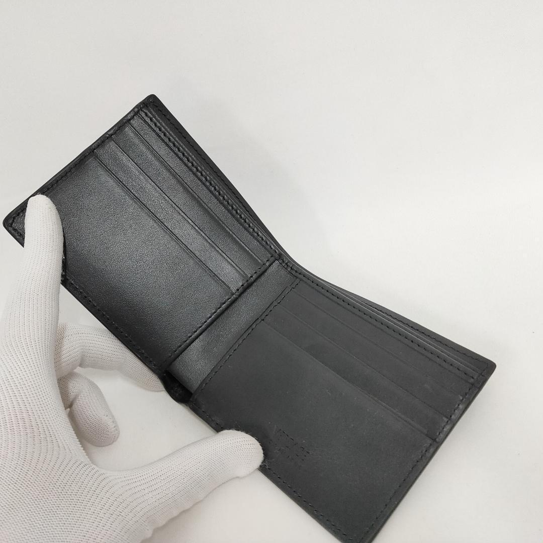 フロントにメゾンのシンボルでもあるブルーのギリシャ柄をあしらったヴェルサーチの二つ折りコンパクトウォレット。キャッシュレス時代に人気の小銭入れがないタイプで、すっきりスマートに決まります。